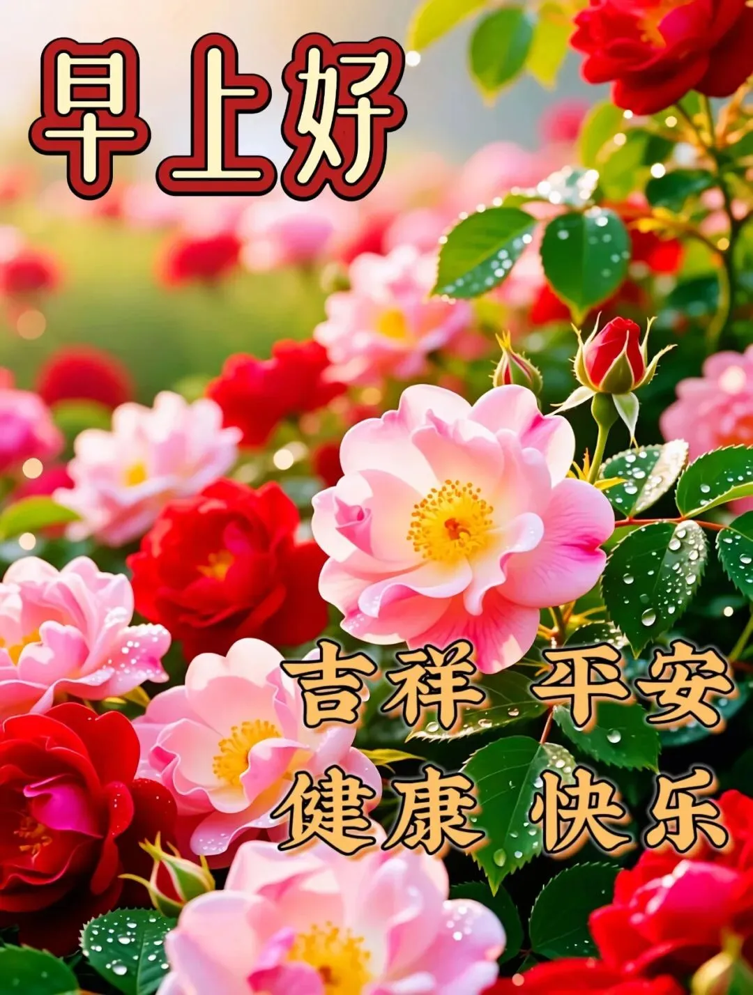 25、😊早有朝气,🌞午有和气,🌝晚有福气,🙏常带喜气,🎉每天都有好运气,🌹问声早上好,🍅事事都如意!🍎早上好!🌹❤️🙂🤝🌺🎉