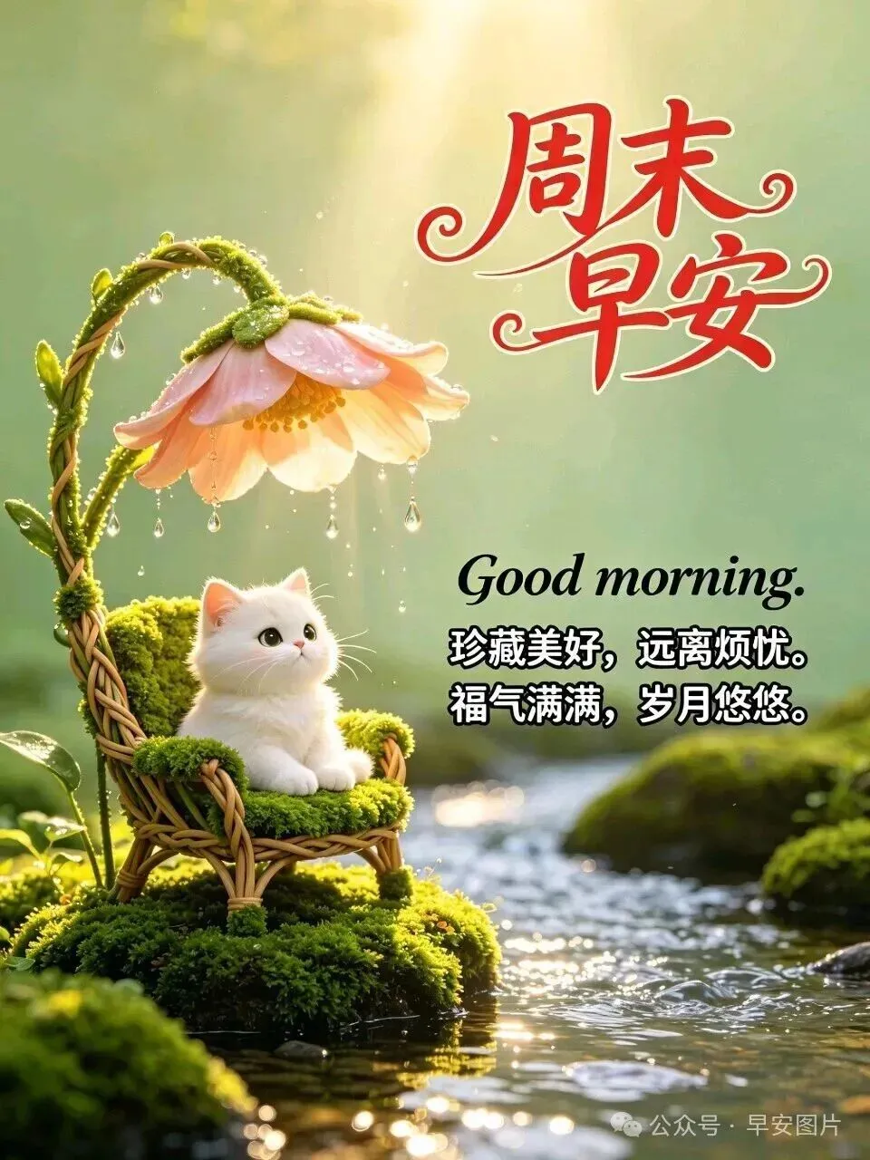 清晨问好,喜迎美好周末🌤️。清风漫拂🍃,吹散心底忧愁☁️。烟火寻常🏡,日子安稳从容🌿。心怀暖意💛,万事顺意✨,岁岁吉祥常在🌸,日日平安喜乐。