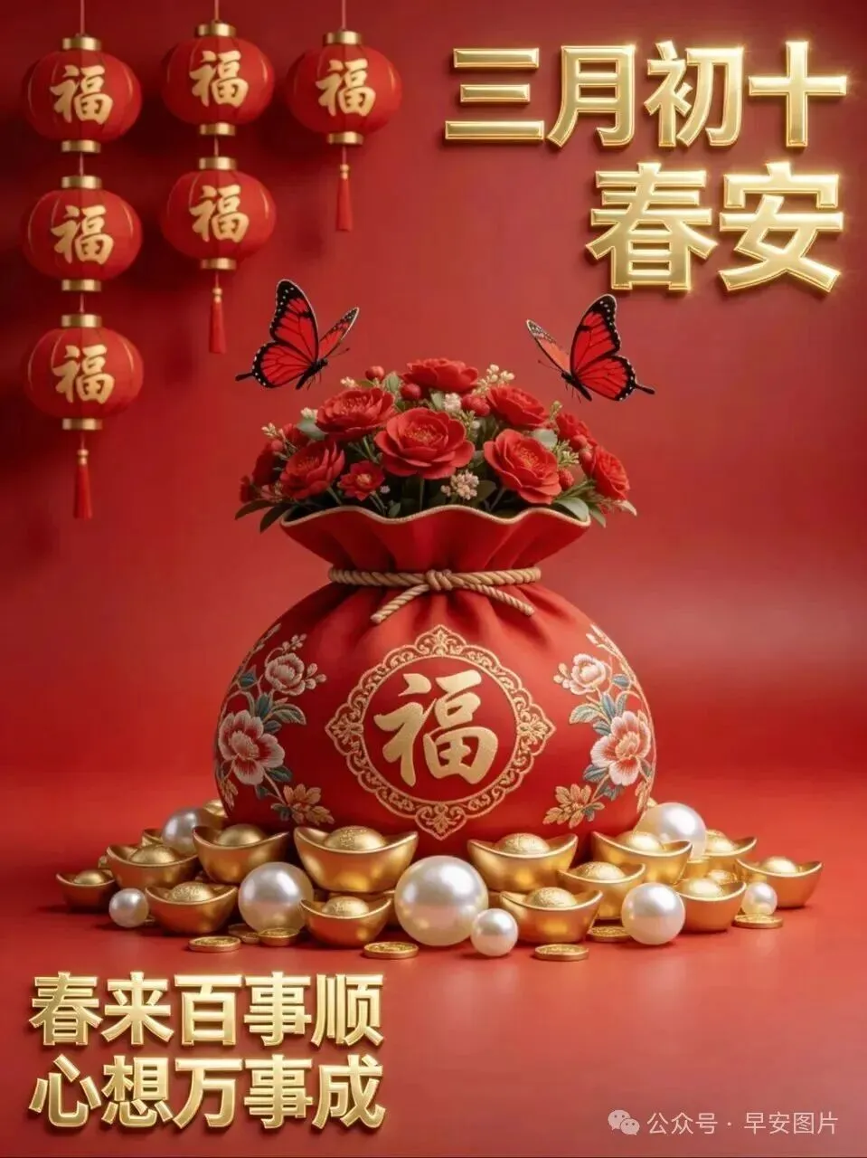 三月初十吉时至,春风送福入君怀。愿您心田常沐暖阳,眉间不染愁霜。所行之路皆坦途,所念之人皆安康,所盼之事皆圆满,日日都是好时光。