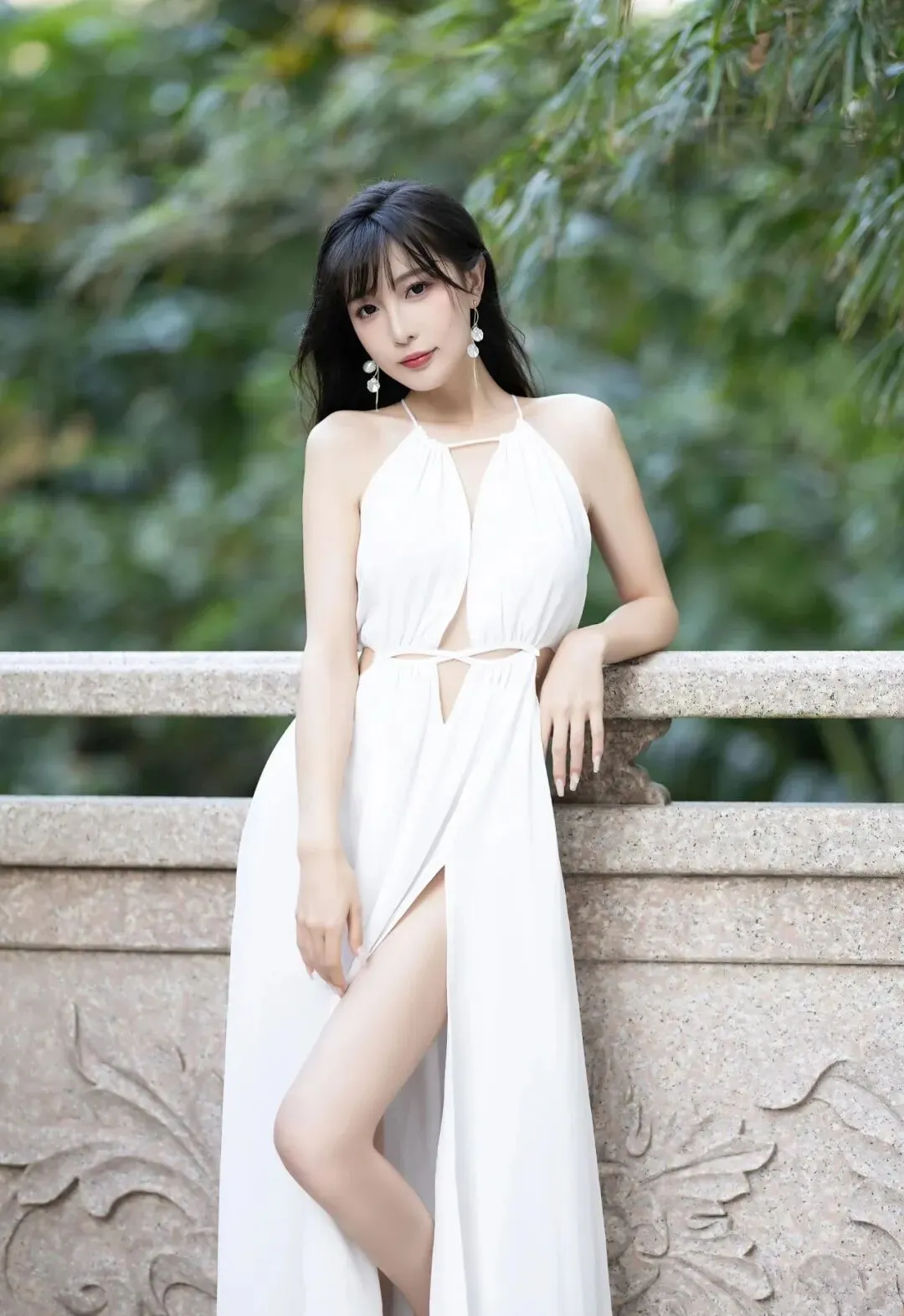 性感的白色镂空连衣裙,胸部和腰部的镂空设计,非常性感,若隐若现的身材,看上去很有诱惑力,高开衩的裙摆,露出迷人的大长腿,十分吸睛。 ▼