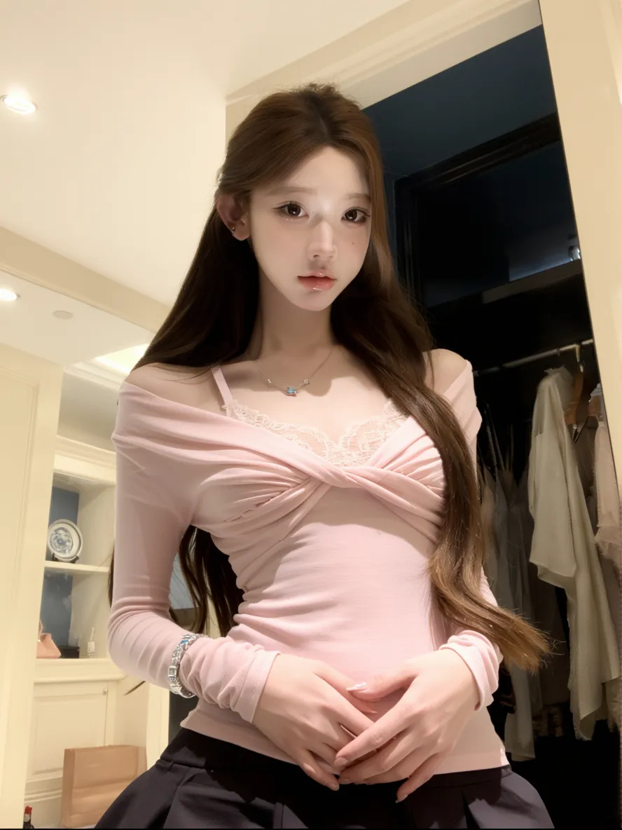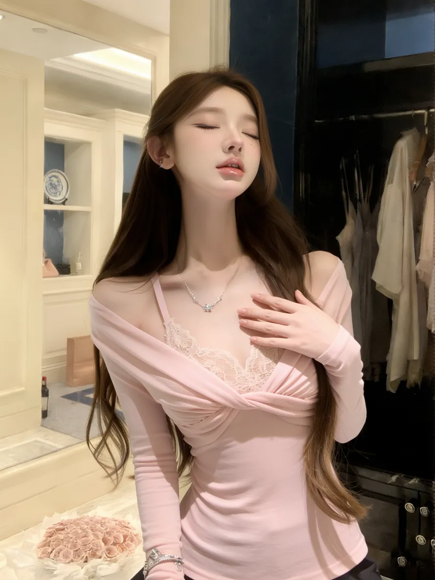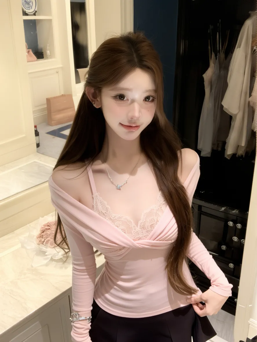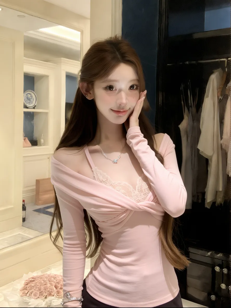 当前位置:首页>美女资讯>粉嫩露肩蕾丝装_长发女神温婉动人