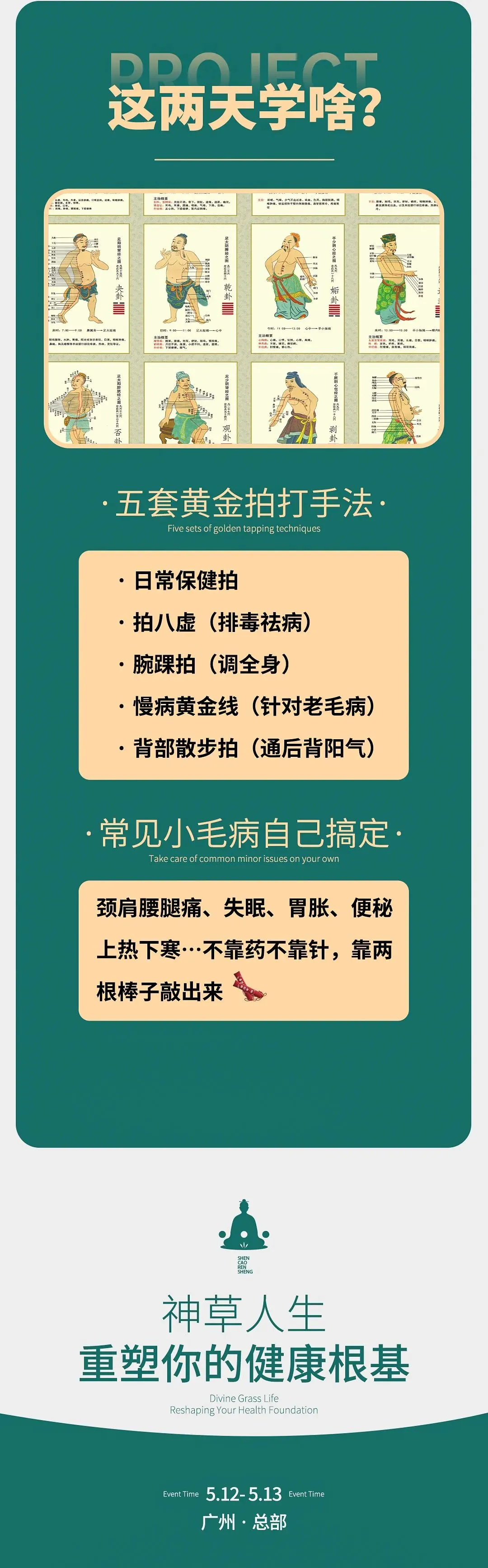 慢病黄金线(针对老毛病)、背部散步拍(通后背阳气)