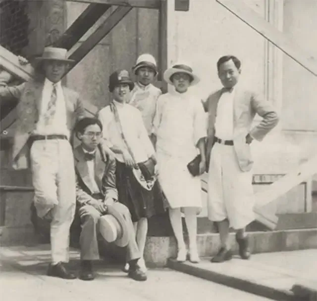 上世纪二十年代宾大部分留学生合影,从左至右杨廷宝、梁思成、林徽因、陈意、孙熙明、赵深 杨廷宝家属 图