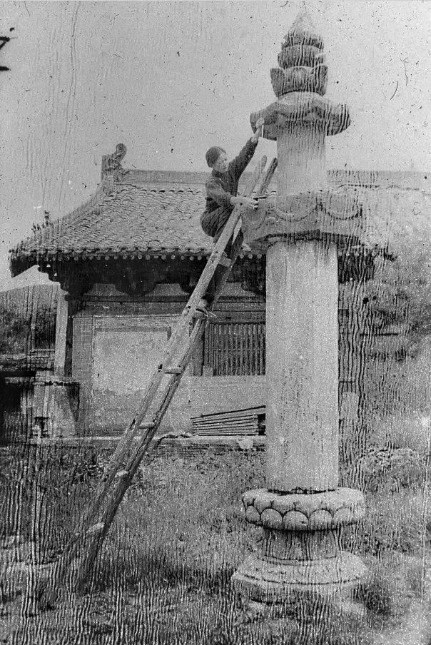 1937年林徽因在五台山佛光寺测绘经幢 中国营造学社纪念馆 资料图