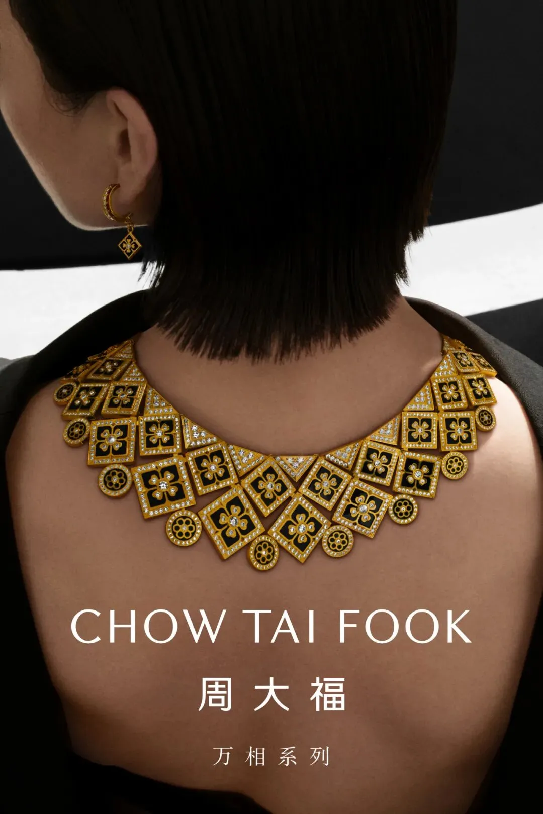 周大福全新万相系列珠宝正式发布,该系列以中国传统四瓣花、宝相花及团花图腾为灵感,凝结玄黑、绛红两种色彩,以柔和曲线与鲜明的几何设计,大胆诠释毫不妥协的自我表达。