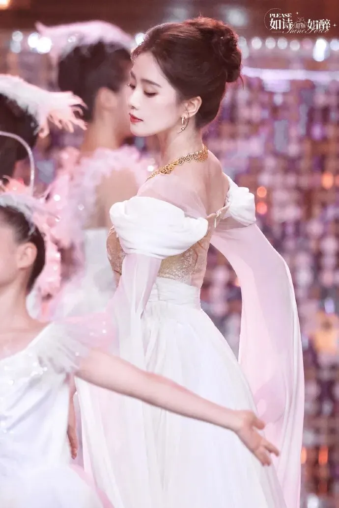 因此,当晚的舞台表演部分堪称无声的高光——她不是在穿服装走道,而是用每一寸骨架与力量,将芭蕾舞功底融入东方古典神韵,将舞台节奏、动作线条与背景光影天然交织。