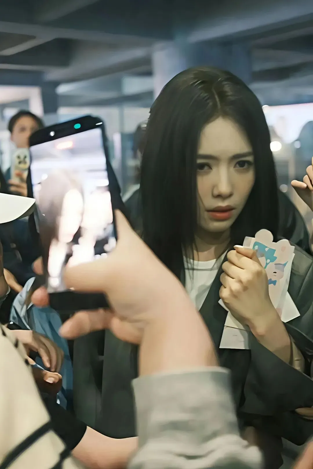 由于空间过于壅挤,加上四面八方包围,蔡文静疑似因呼吸不顺与情绪压力过大,最后忍不住当场落泪,看起来相当无助。更让不少人心疼的是,即使场面混乱,她手上仍紧紧护着粉丝送的信件,没有松手。