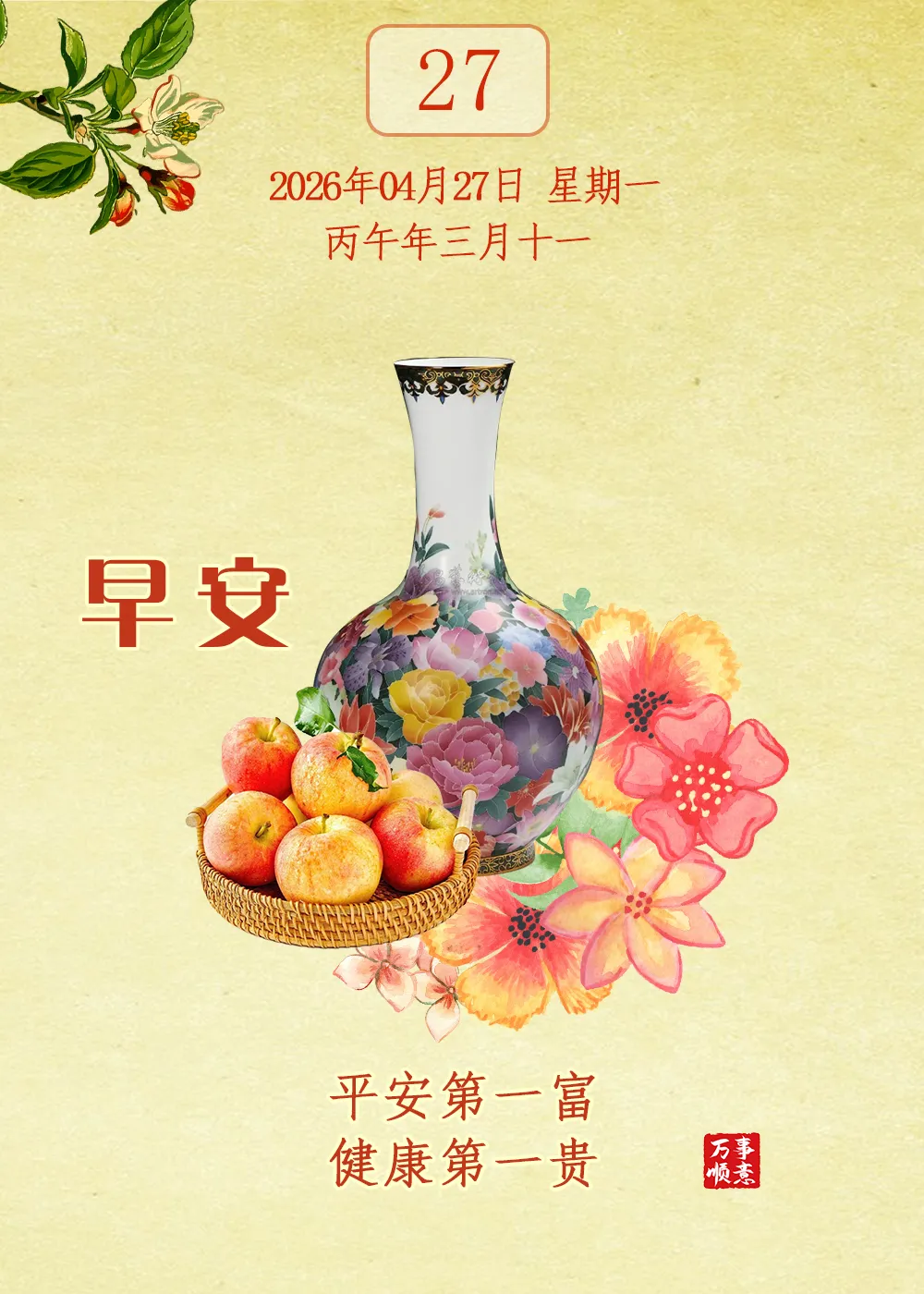 当前位置:首页>美女资讯>2026年4月27日 早安问候图片