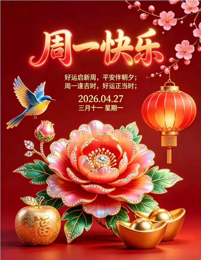 一年之计在于春,一天之计在于晨。早上敞开祝福门,问候早早添精神,开心舒心享不尽,顺风顺水好前程,周一早上好!