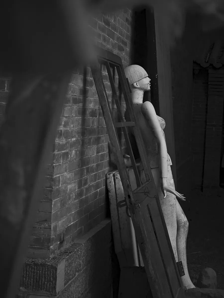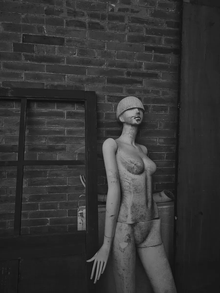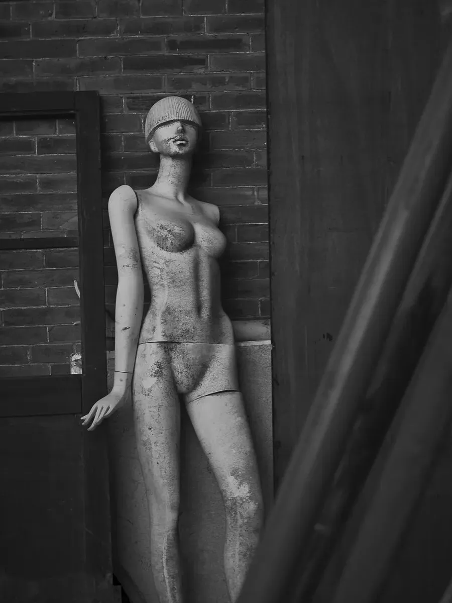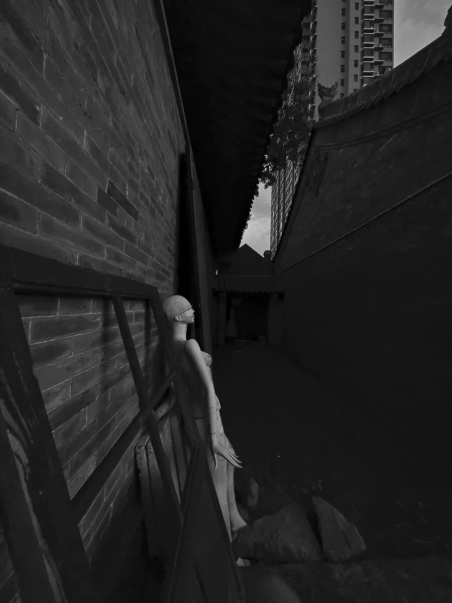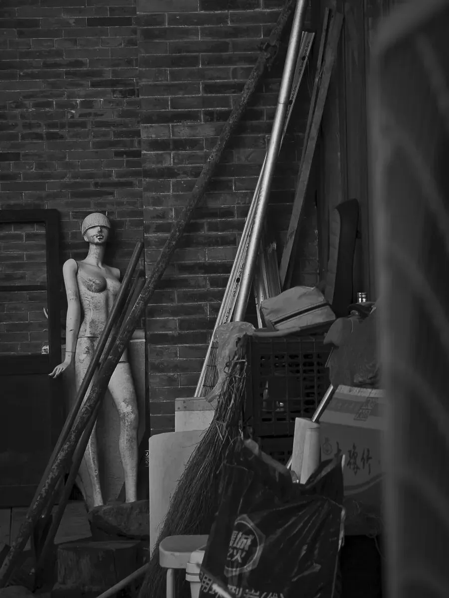 青砖旧巷里,这具落满尘垢的模特,像一面照见生命本真的镜子。它曾是华服的载体、商业的注脚,当时代的潮水退去,它被弃于角落,肢体残缺,面容模糊,如同许多被定义的价值,在时过境迁后归于荒芜。这具无生命的模特,却藏着儒、释、道三家共同叩问的生命真相:价值的依附与失落,自我的迷失与回归,以及生命本身的永恒韧性。