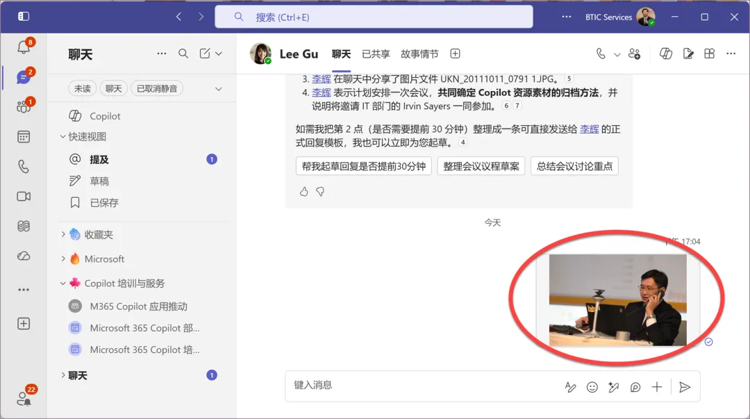 就像现在这样,当在 Teams 1:1 对话、群组沟通,或团队频道消息中,直接发送或粘贴图片时,Teams将在图片传递给接收方之前,自动清除该图片中的所有 EXIF 元数据。