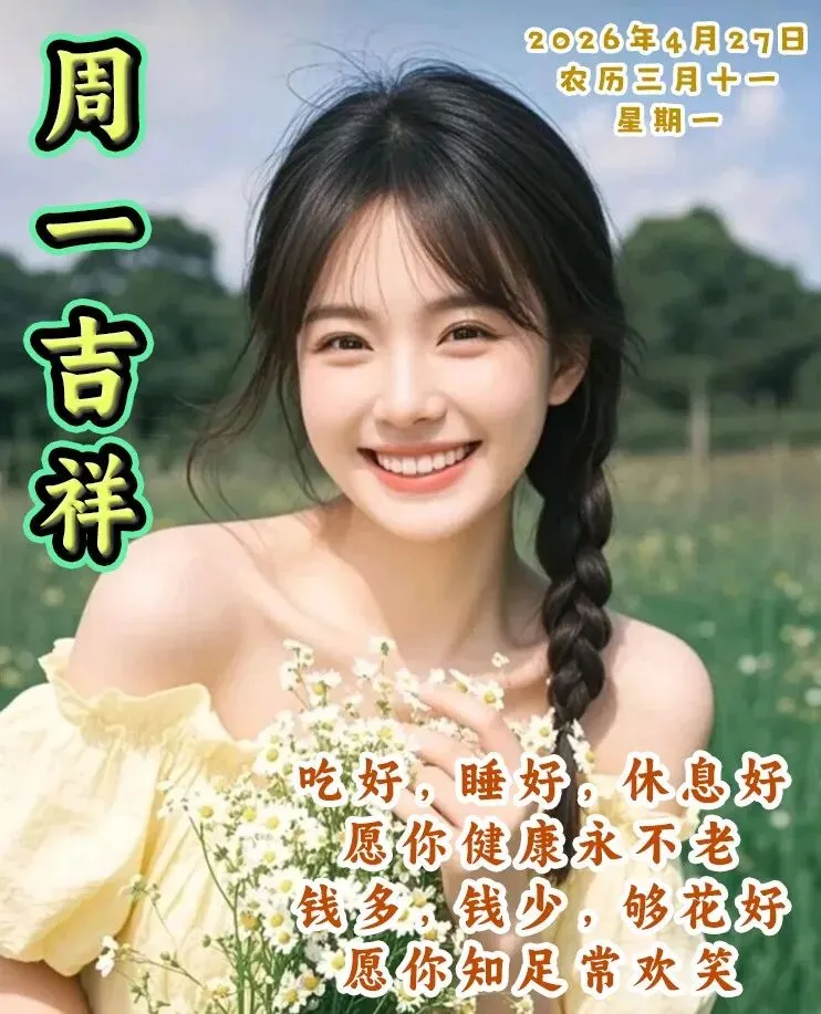 当前位置:首页>美女资讯>4月27日漂亮周一早安祝福图片,早安问候祝福语