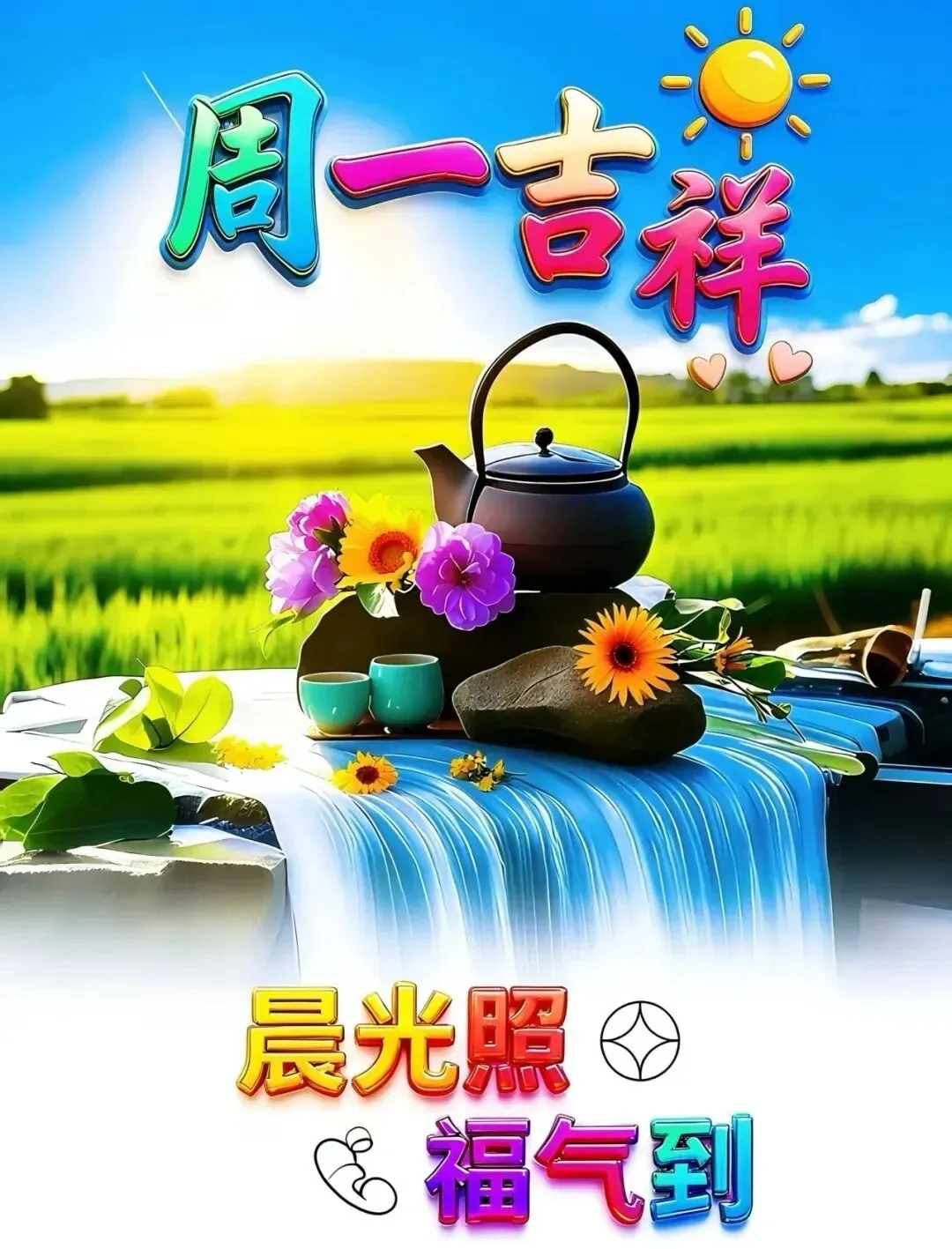 🌅吉星高照福满堂,🌷笑口常开乐飞扬;💐幸福安康常相伴,🌈心想事成好运长;🌹平安顺意吉祥绕,🎁美好未来共辉煌。🧡周一早上好!