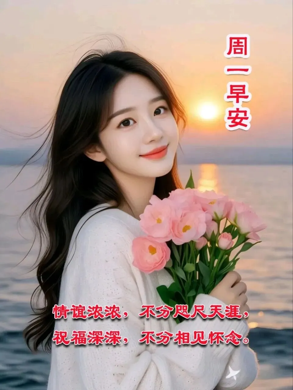 愿你在这个美好的清晨☀️:拥抱平安🙏,拥有健康💪,怀揣幸福🥰,携带快乐😄,拥抱温馨💖,手捧甜蜜🍬,握住财运💰,伴着吉祥✨,被岁月温柔以待❤️,快乐度过每一天!周一早上好!🌷