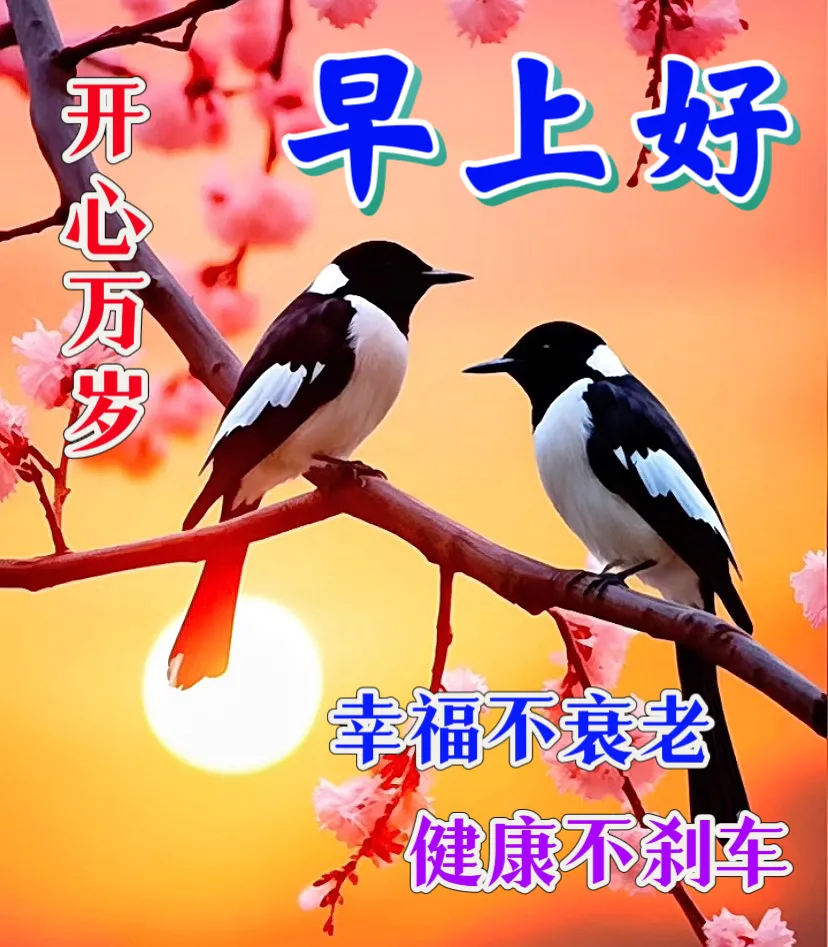 开心是风🌬️💨,快乐是雨🌧️💧,唯有健康才能呼风唤雨💪🍎;吉祥是天☁️✨,幸福是地🌍🏡,唯有平安才能顶天立地🕊️🧧;祝你、祝我、祝我们💖👭,岁岁平安🙏,健康常伴🍎,开心快乐每一天😊🎊!早上好☀️🌞!