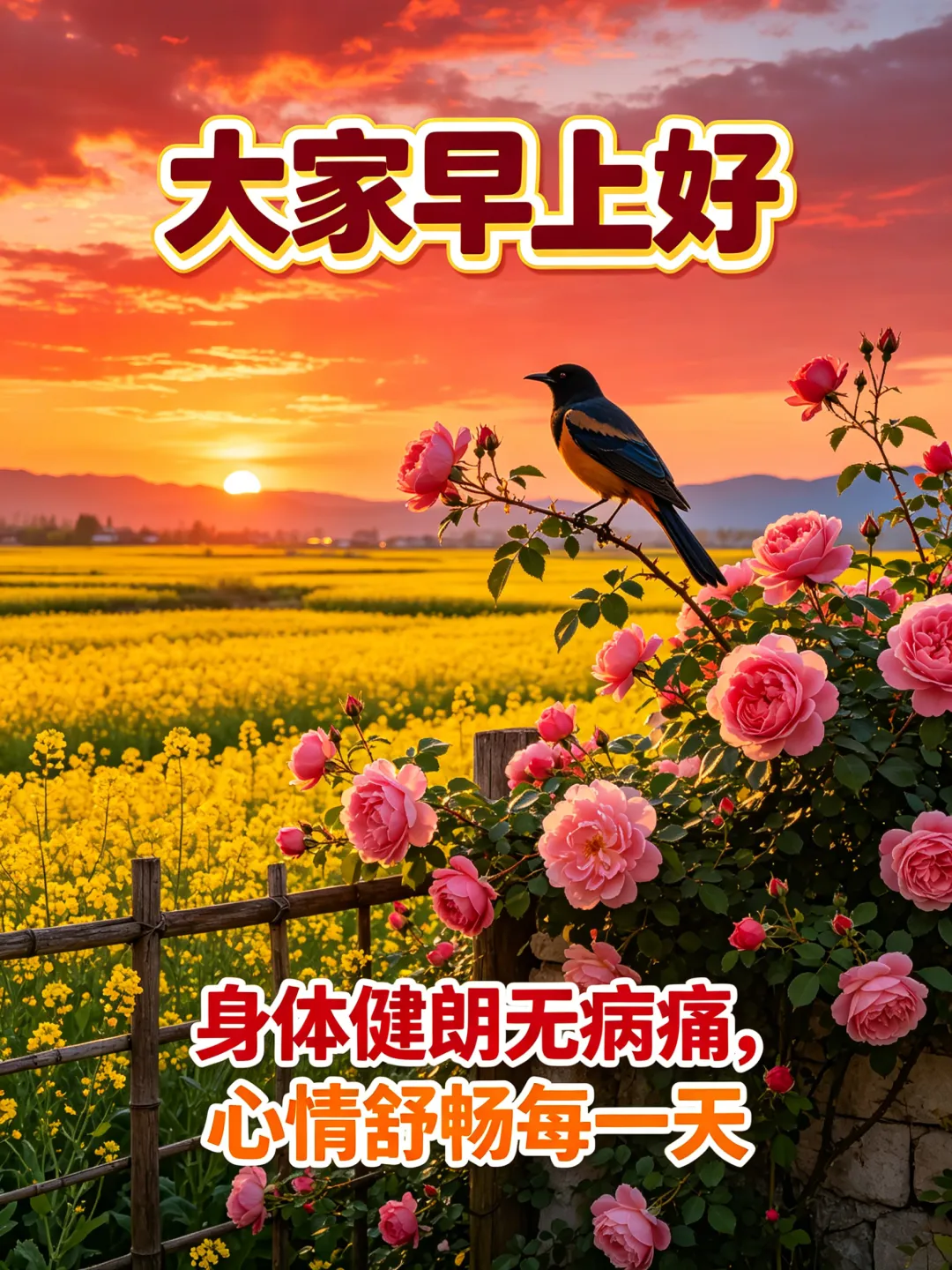 开心路上度年华,每日悠闲聊佳话。留下健康看晚霞,生命就像一朵花。看淡人生诸多事,平安健康最潇洒。早上好!🌹😄🌞🌺🤝🎉