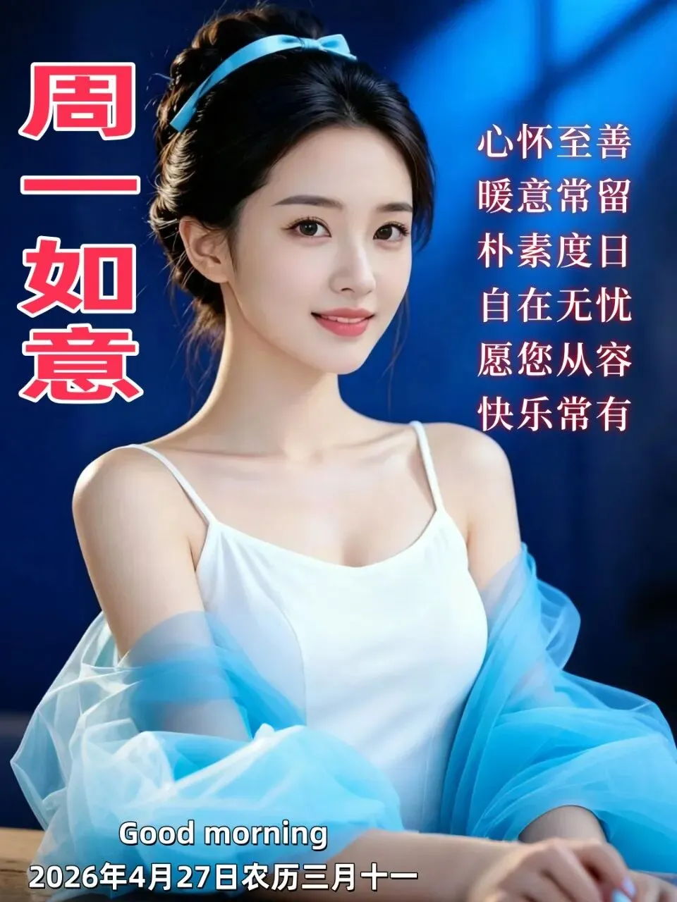 当前位置:首页>美女资讯>2026年4月27日周一早安图片,昨天年轻,那是年龄.今天年轻,那是心态.天天年轻,那是快乐