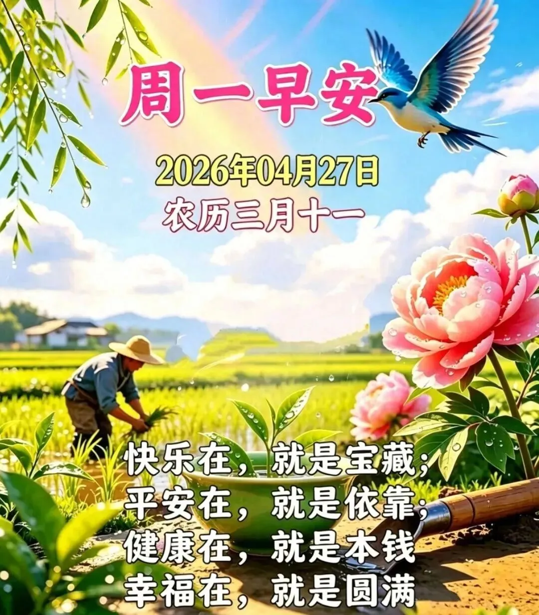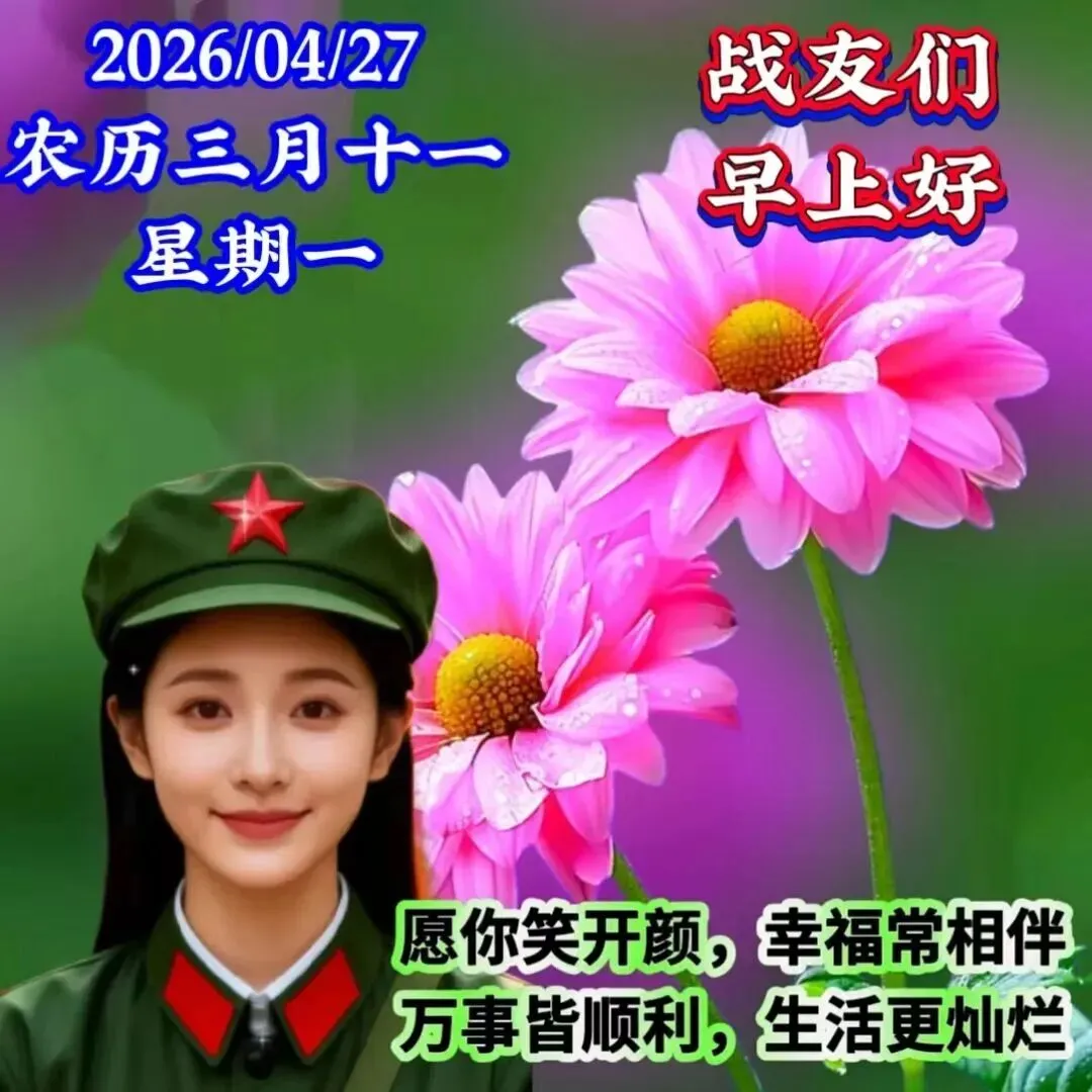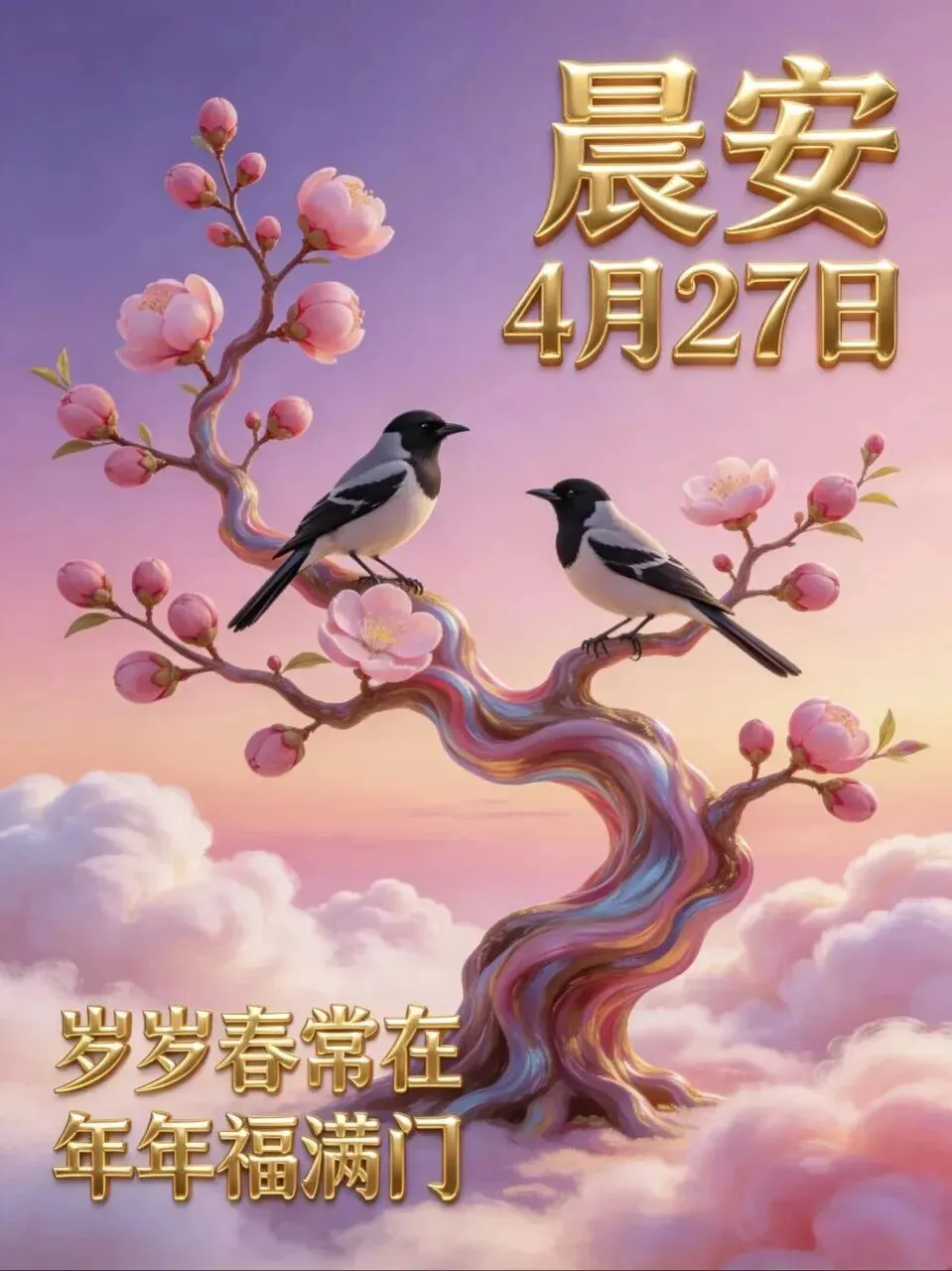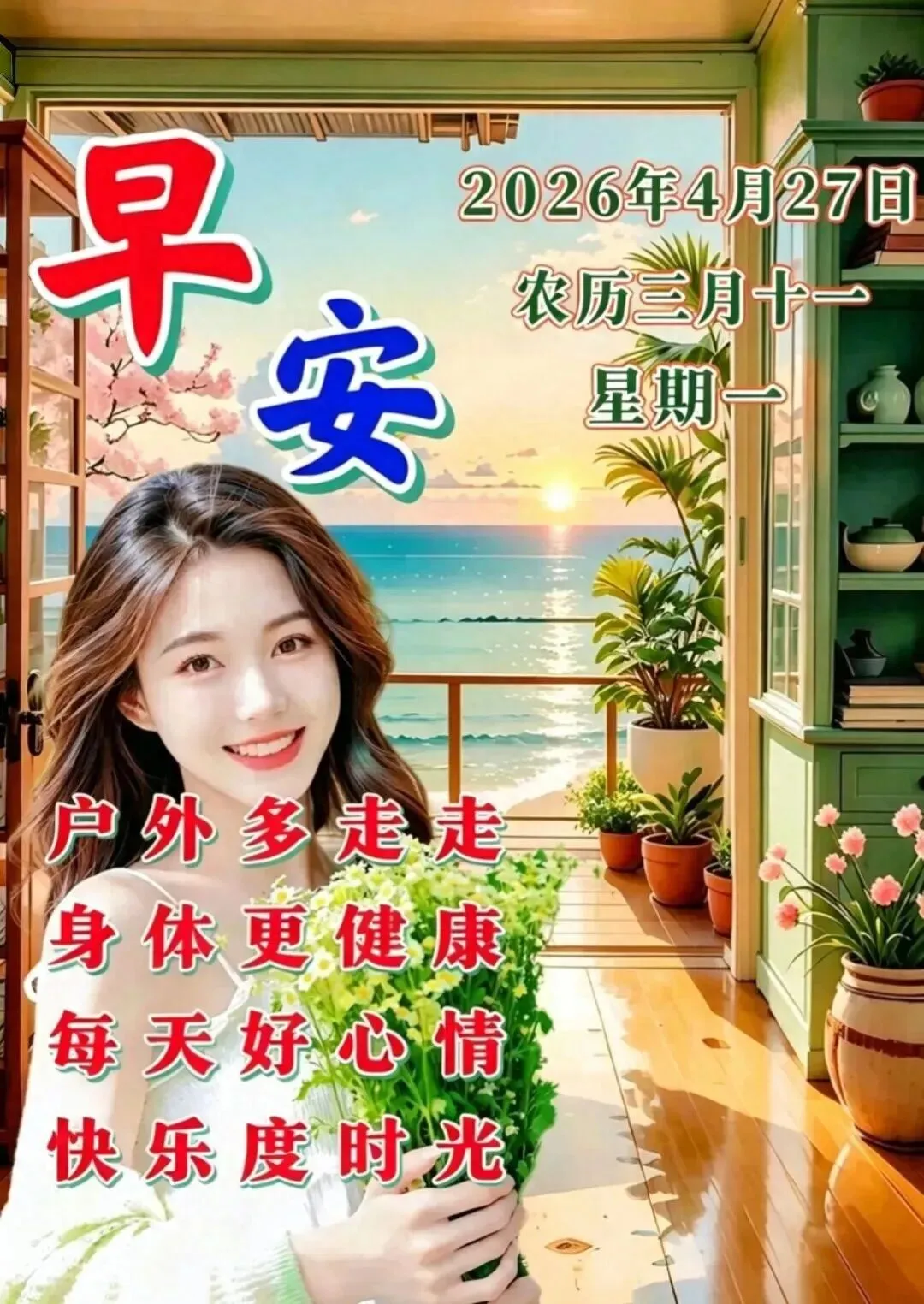 2026年4月27日周一早安图片,昨天年轻,那是年龄.今天年轻,那是心态.天天年轻,那是快乐