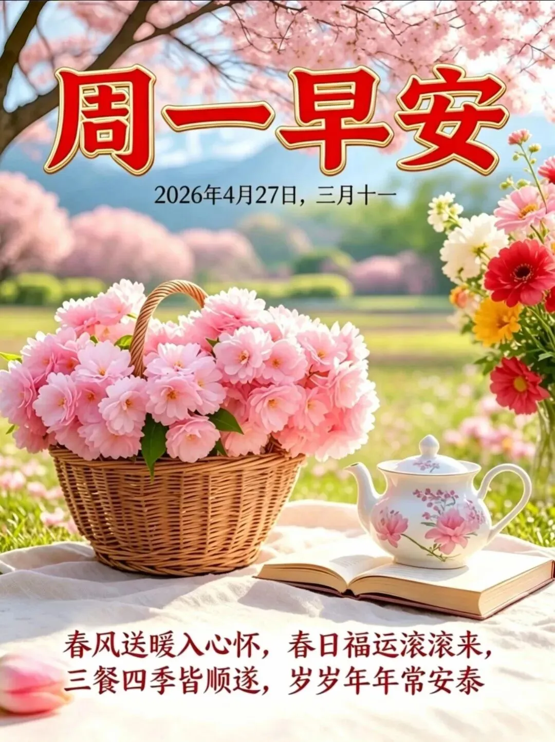 周一早安!浪漫的季节🌸,新的一周📆,迈向新的希望🌟,心怀期许❤️,向阳而行🌞,放下琐碎🧹,拥抱温柔🍃,一路向阳生长,遇见生活中的快乐。