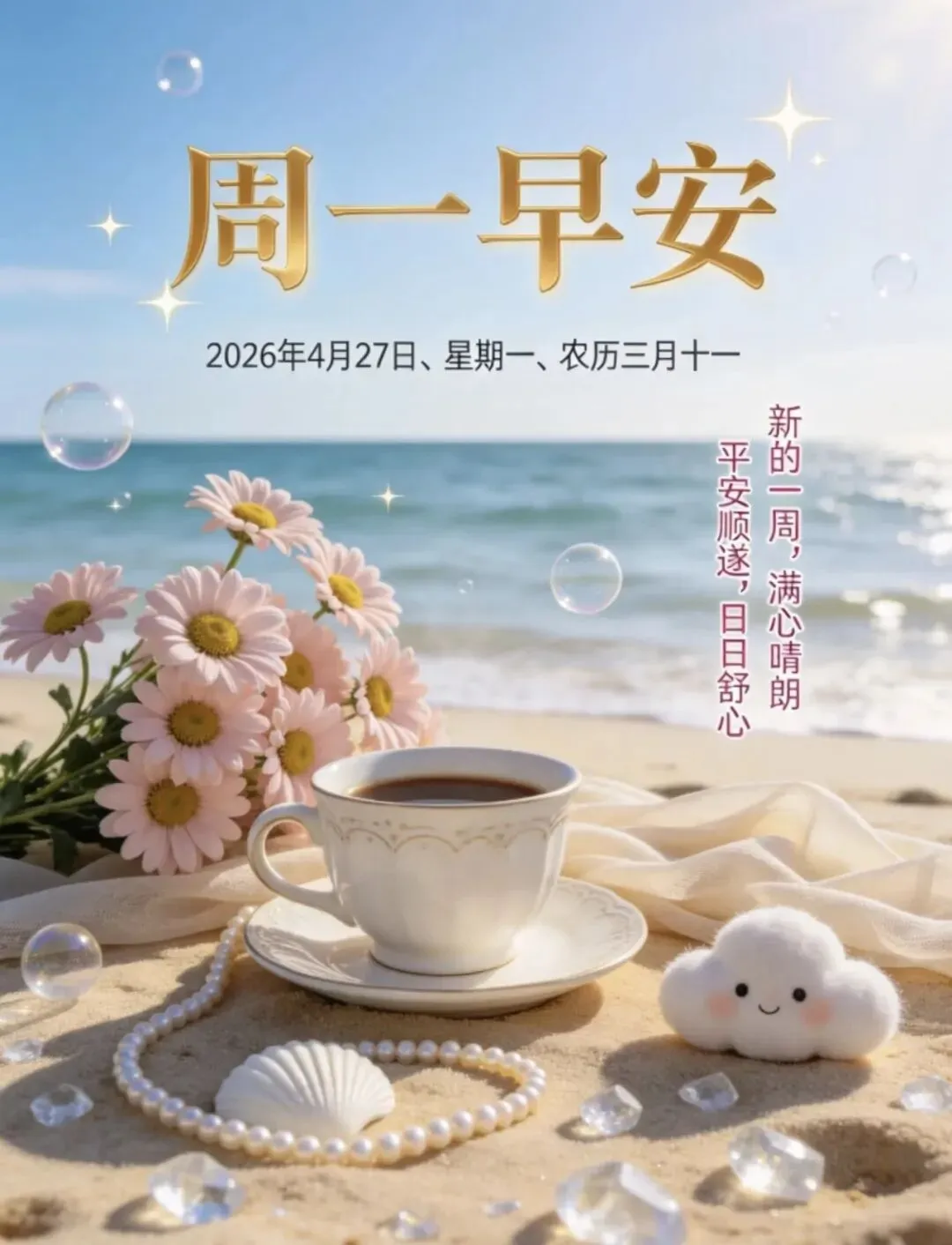 周一早安🌤️!愿这一周的每一天,都平安喜乐,万事顺意,所求皆如愿,所行皆坦途,一路繁花相伴,一路温暖前行🌈,把平凡的日子过成诗,把简单的生活酿成糖🍬,在时光里收获温暖,在前行中遇见惊喜,好好生活,慢慢相遇,珍惜当下,未来可期💛!