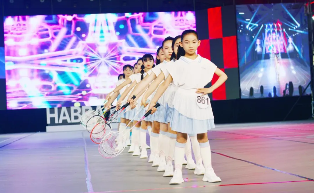 赛场上,驻马店市第三小学体育模特社团队员身着统一服装,手持羽毛球拍,伴随动感音乐从容登场。同学们步伐整齐规范,身姿挺拔端正,将体育模特的形体美感与运动活力自然融合。大家动作舒展大方,气质阳光自信,尽显少年朝气蓬勃、健康奋进的良好状态,收获了现场评委和观众的认可与好评。