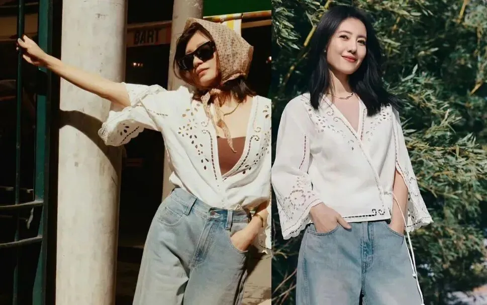这身缕空白色衬衣确实很好看,女人味十足。