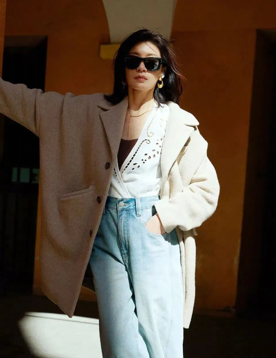 高圆圆的松弛感街拍穿搭精髓:让色彩与场景共振,款式与氛围共情