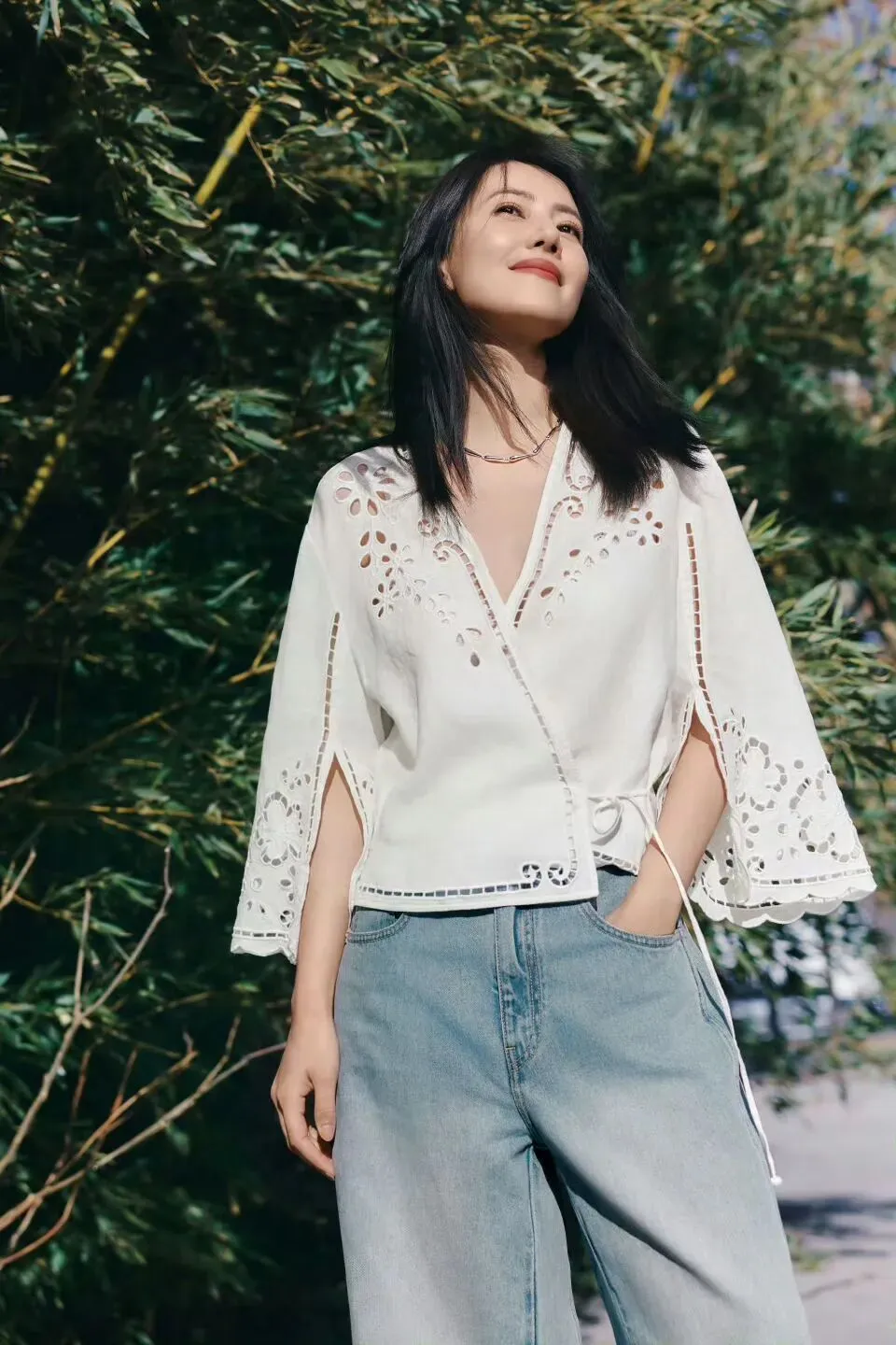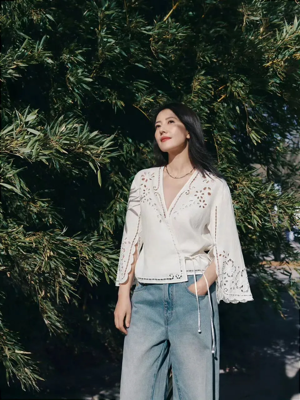 金色项链的配饰也恰到好处,轻盈点缀。