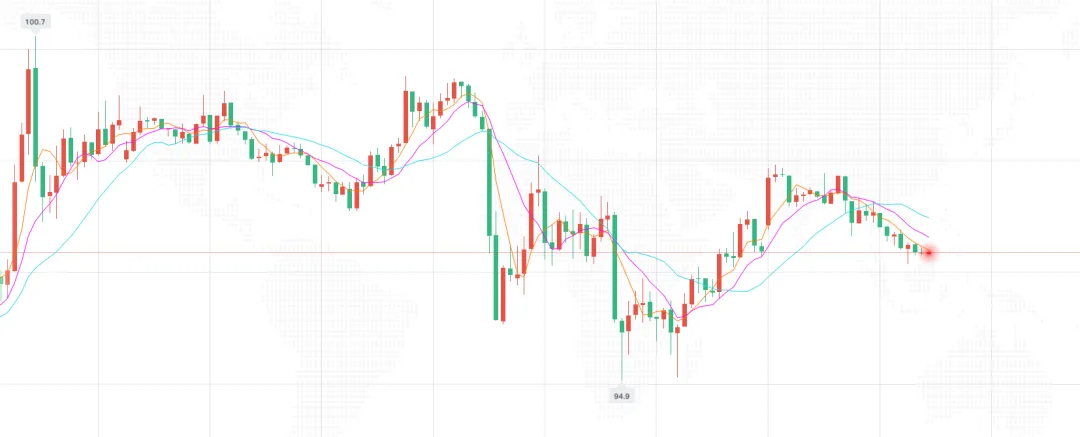 2、建议在93.3-95.6美金附近做多,止损0.3个点,目标看105.3-108.9美元附近即可;