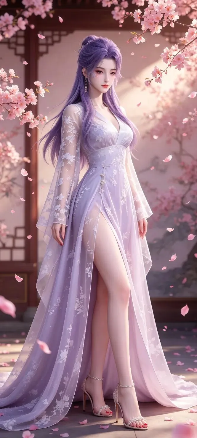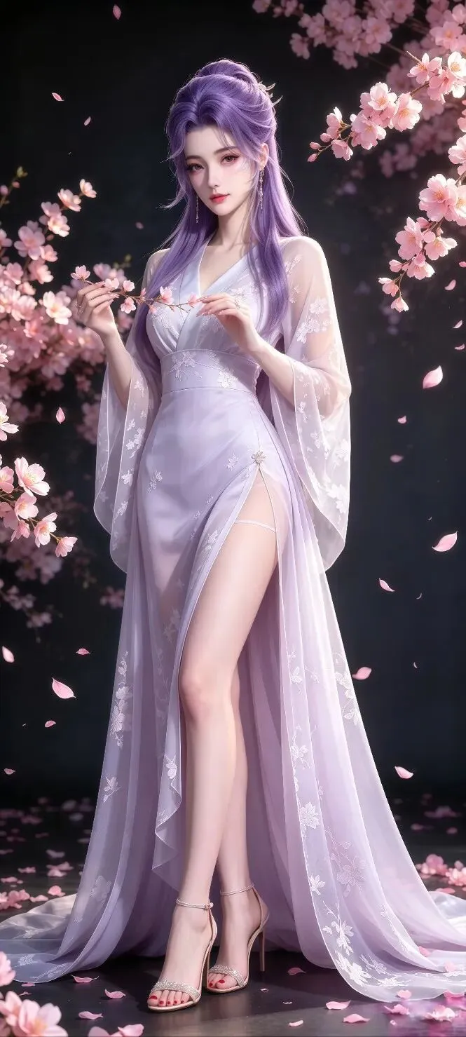 这组壁纸最动人的地方,莫过于藏在画面里的无数匠心细节,足以让每一个细节爱好者感受到满满的诚意。角色的面部刻画精准贴合云霄仙子的人设,清透的底妆衬得肌肤自带柔光质感,紫调的眼妆与瞳色完美呼应,眼波流转间既有不食人间烟火的清冷,又藏着东方女性独有的温婉柔情,眼下的云纹鎏金装饰,更是将国风元素与仙侠妆造完美结合,既不突兀又成了画面的点睛之笔。从耳畔流苏垂坠的精致耳饰,到指尖带着细闪的美甲造型,每一处配饰细节都打磨得恰到好处,半透的纱质衣袖上,暗纹印花细腻清晰,薄纱的通透质感与光影的折射效果被刻画得淋漓尽致,就连飘落的每一片花瓣,都有着自然的纹理与灵动的动态感,每一处细节都经得起放大细看,尽显国漫制作团队的细腻功底与审美追求。