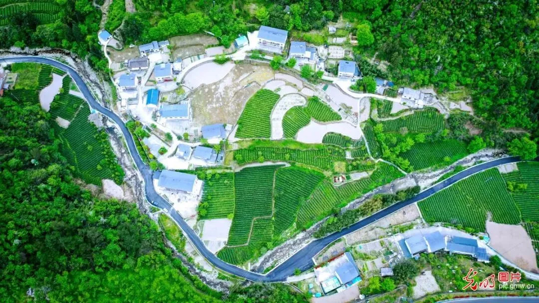 4月20日,湖北省十堰市赛武当国家级自然保护区内的营子村五步河,乡村农舍、田园、公路等错落有致地交织在一起,构成一幅别样的田园美景图。