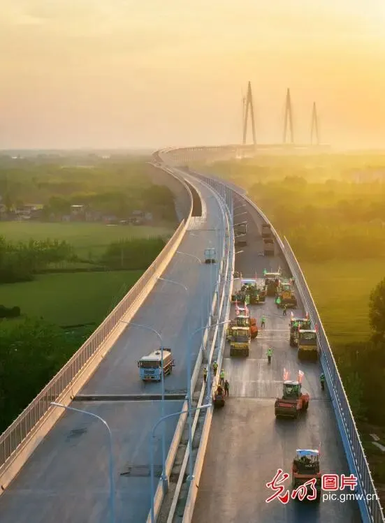 近日,安徽省马鞍山市当涂县,巢马城际铁路长江公铁大桥进行钢桥面沥青铺摊作业。该条铁路是安徽通往上海等长三角城市的新高铁通道,建成后,对完善区域路网、打造“轨道上的长三角”、服务长三角一体化高质量发展和长江经济带发展具有重大意义。