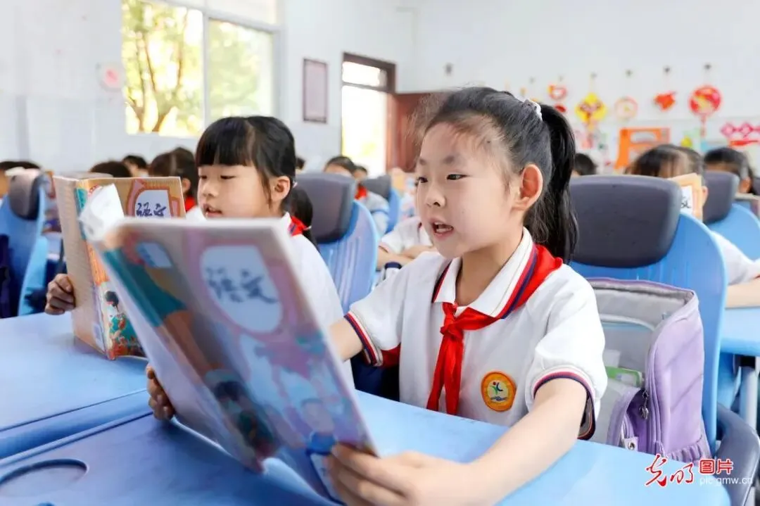 4月20日,江西省吉安市峡江县实验小学的学生在诵读课文。