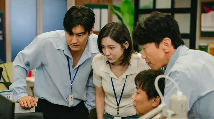 接下来呢她白天,她是面无表情、一本正经的公务员,对着电脑审片,哪怕再尴尬也装淡定;