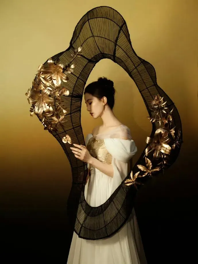 既有跨越时光的古典风骨,又有当代女性的独立与坚定。一颦一笑,一举一动,都尽显 “腹有诗书气自华” 的东方气韵,让这件承载着东方宇宙观的华服,有了最鲜活、最动人的生命力。