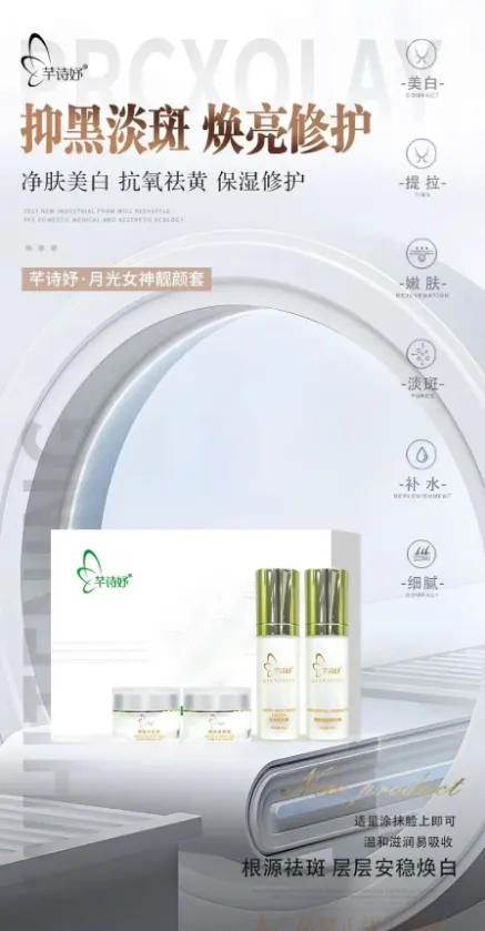 当前位置:首页>美女资讯>芊诗妤月光女神靓颜套 小分子成分快速渗透肌底,提升吸收效率,持续抵御外界环境侵害,防止自由基导致的肤色暗沉与老化