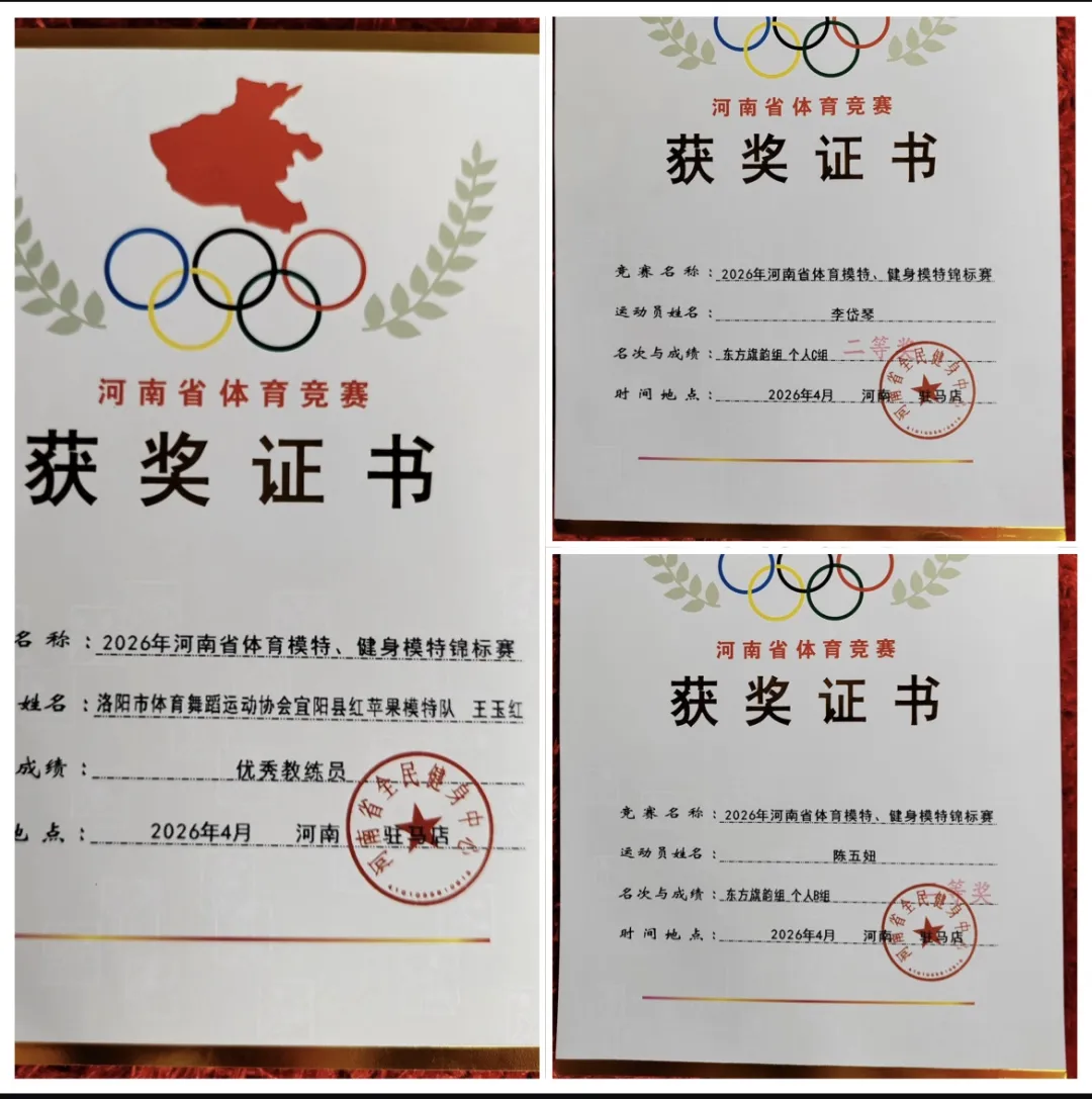 4月23日至25日,2026年河南省体育模特、健身模特锦标赛在驻马店市工人文化宫体育运动中心举行。全省共有58支代表队、1700余人次参赛。宜阳县体育舞蹈协会选派6人组成红苹果模特队,在高手林立的赛场上脱颖而出,斩获多项大奖,实现连续两年在省级赛事中取得重大突破。