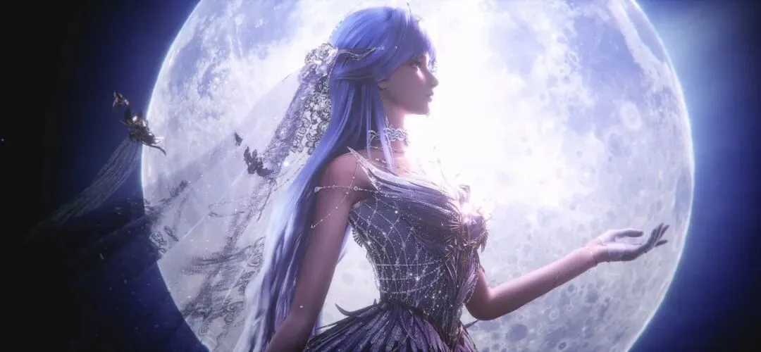 首先是采儿的婚纱,紫色羽毛大裙摆,这简直是美成了月光女神吧。巡礼巡游登场时,也是采用了星河,月光等元素。