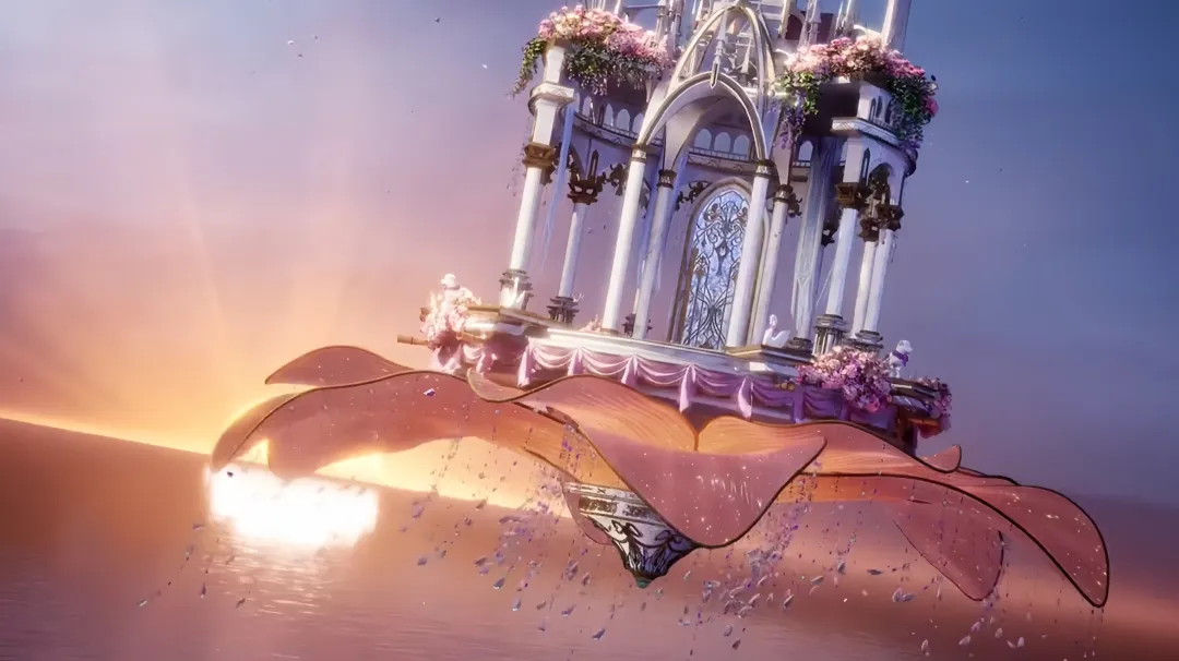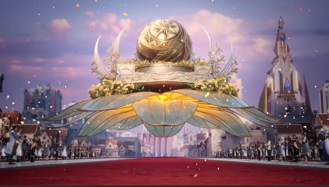 婚车更是官方为他们量身打造的浪漫座驾,顶端蓝紫色的水晶莲花,呼应了采儿盛世莲花的领域技能。婚车的雕花立柱,以及金色光球等,将庄重梦幻感拉到顶峰。