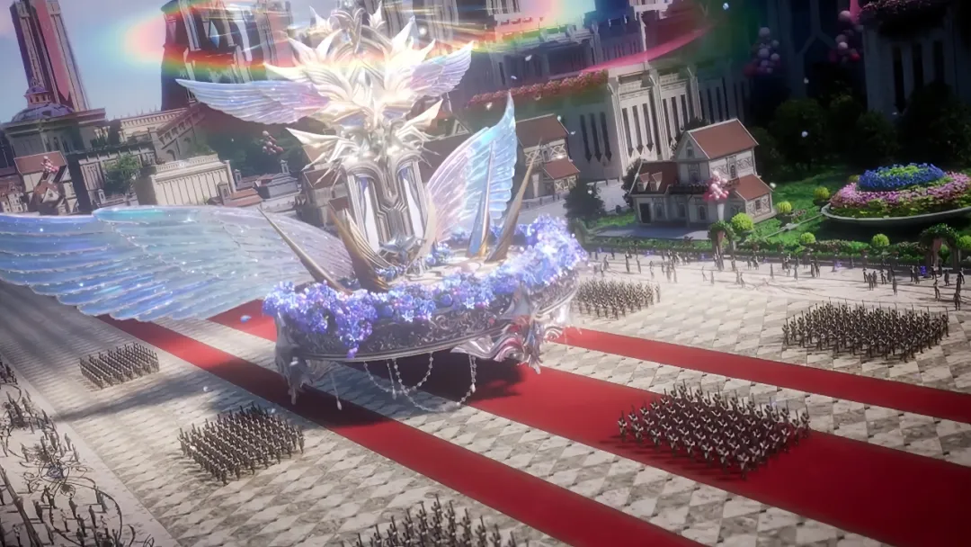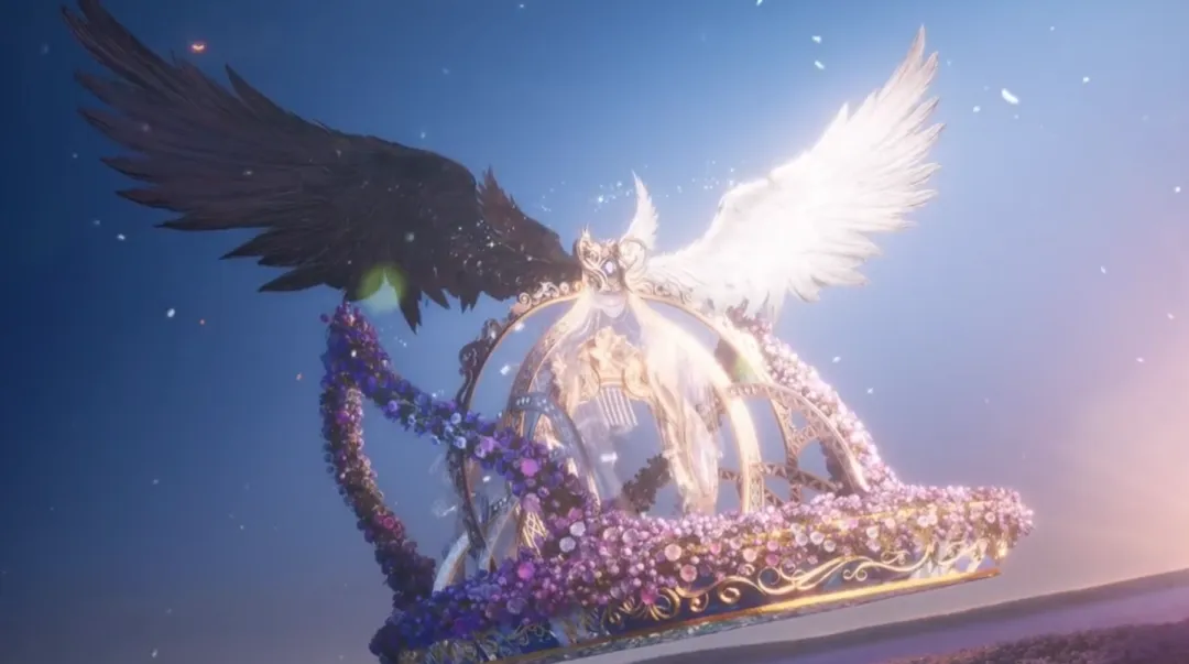 羽央的婚车直接仪式感拉满,韩羽王座的恶魔和天使助阵,搭配了许多花瓣烘托浪漫气氛,就像是行走的城堡。