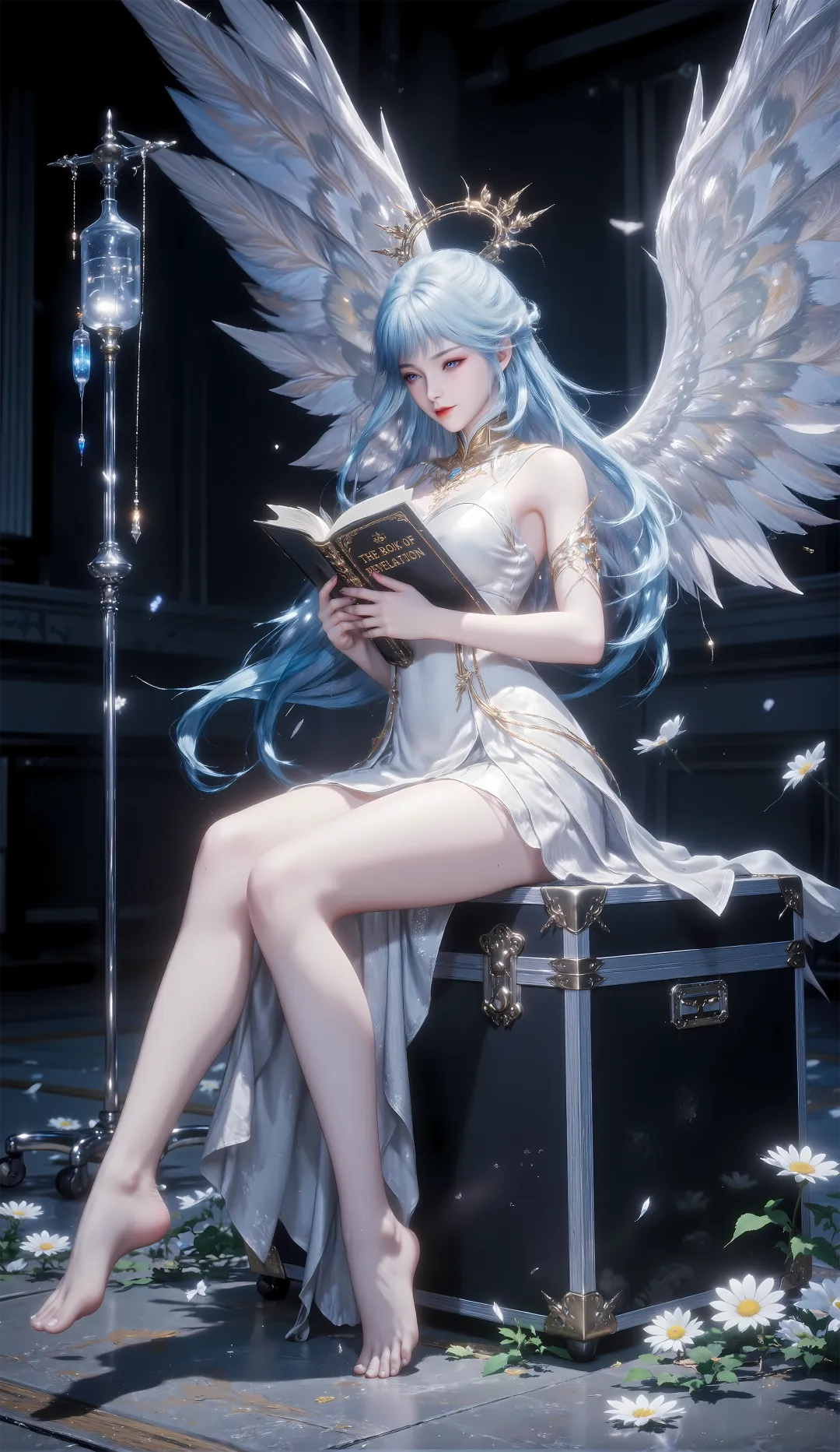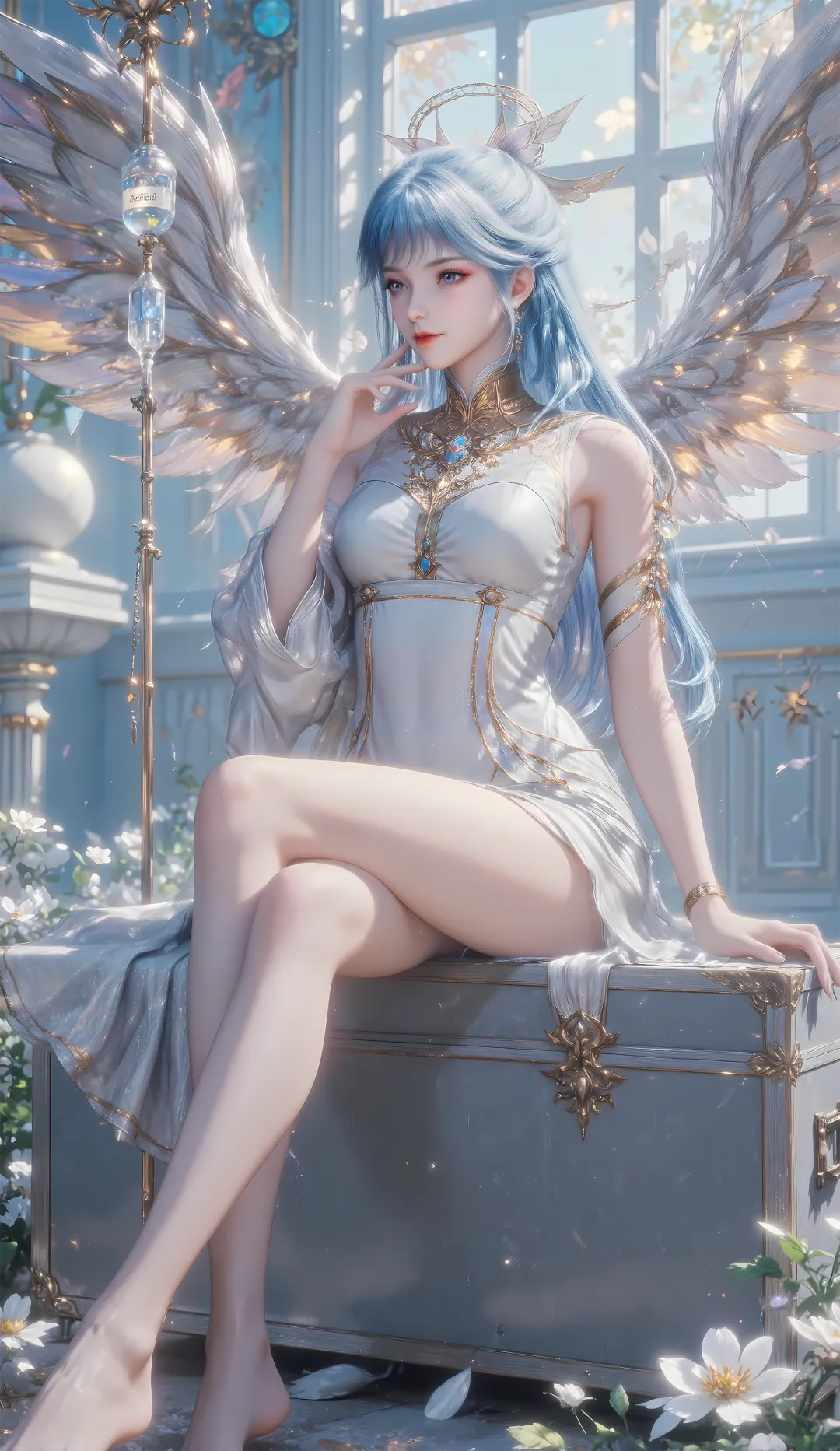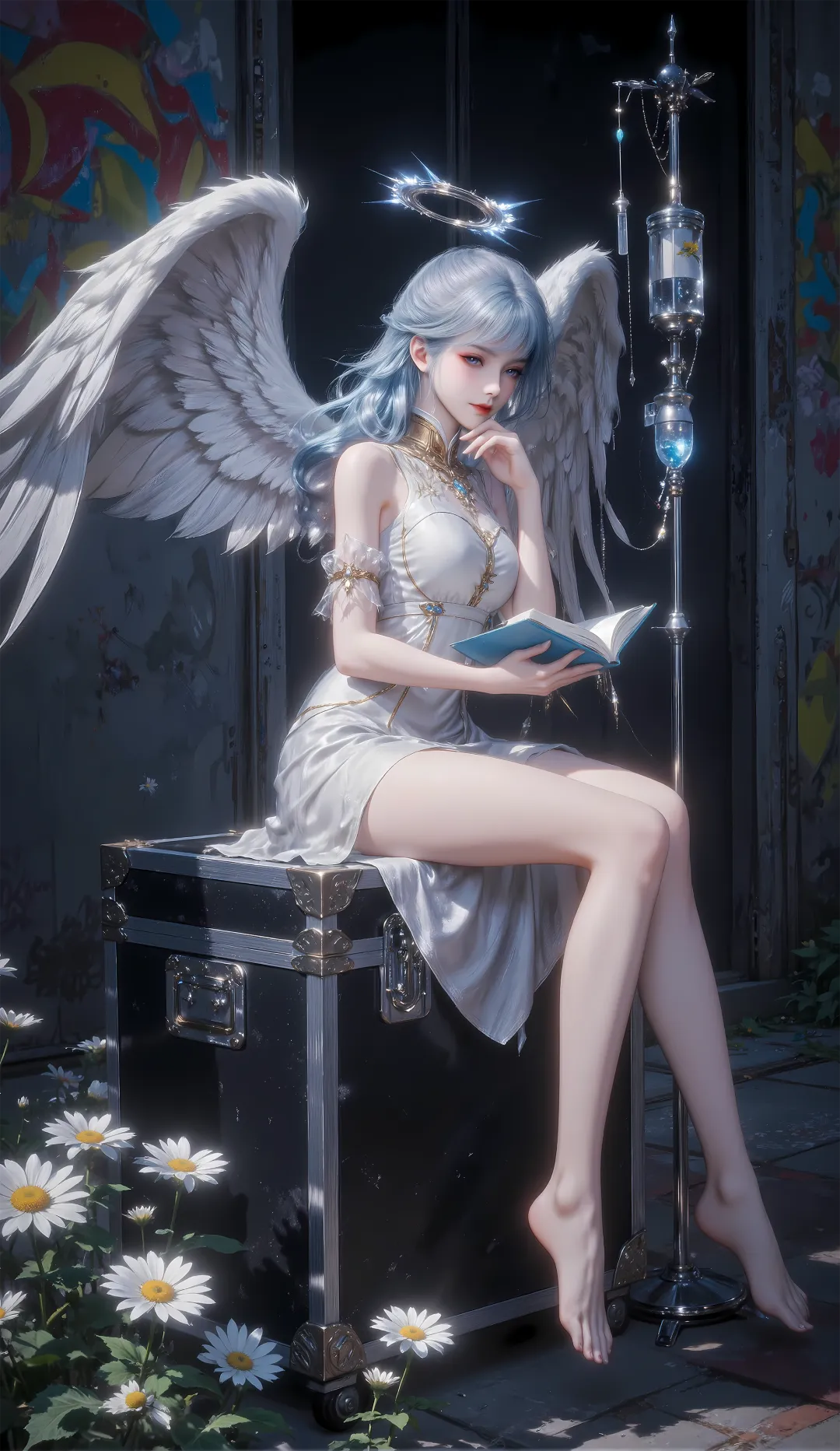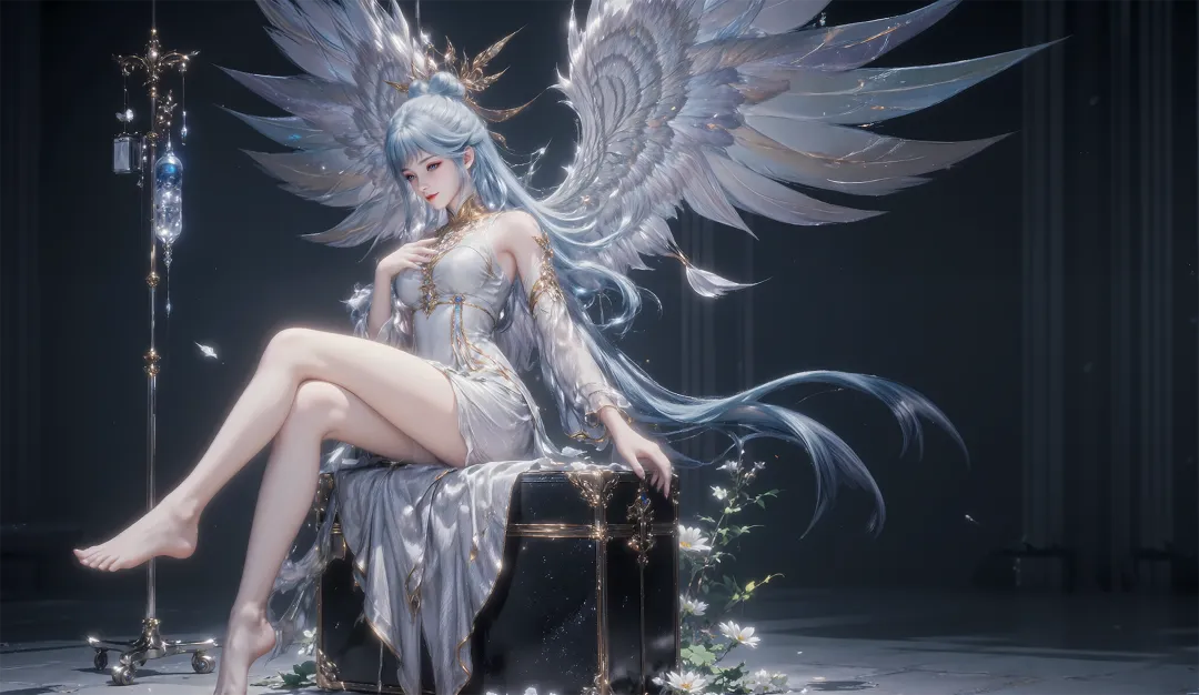 她身穿一件纯白色的露背长裙,材质如丝绸般顺滑,贴合身体曲线,裙摆自然垂落,露出修长的双腿。