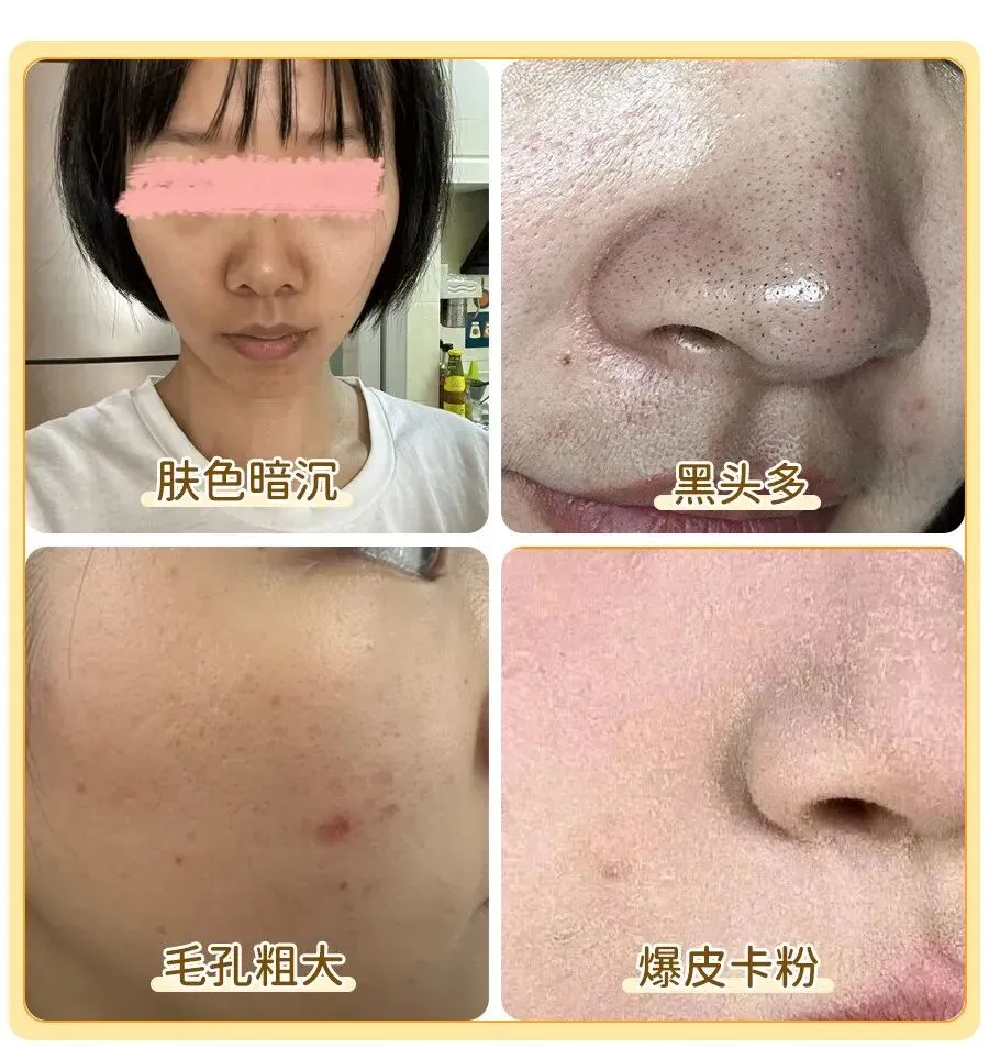 以前皮肤还蛮好的,有娃后报复性熬夜,加上工作压力比较大,饮食上也就不太注意了,皮肤暗黄了不少,毛孔大,黑头也多。