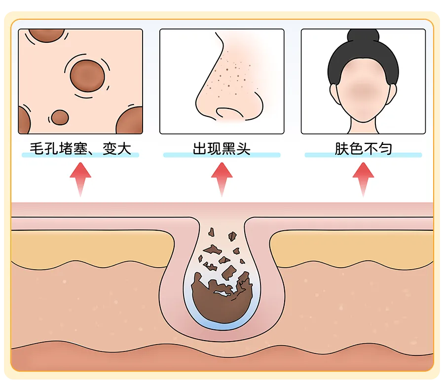 反观咱们呢?自从年龄跑上 3 字头,代谢变慢、皮肤的弹性纤维减少,毛孔周围的皮肤被“撑”开,毛孔、黑头就显得更扎眼了