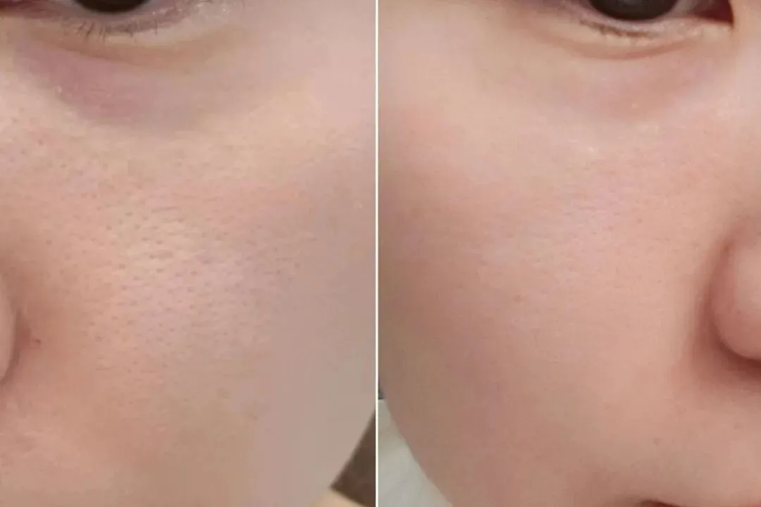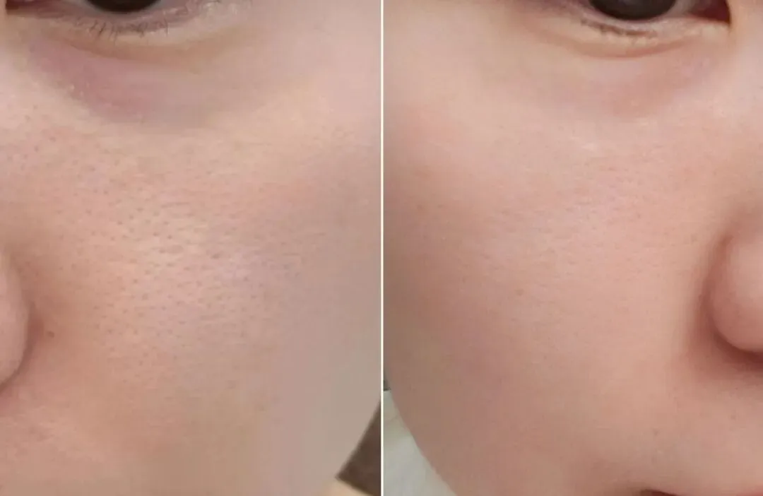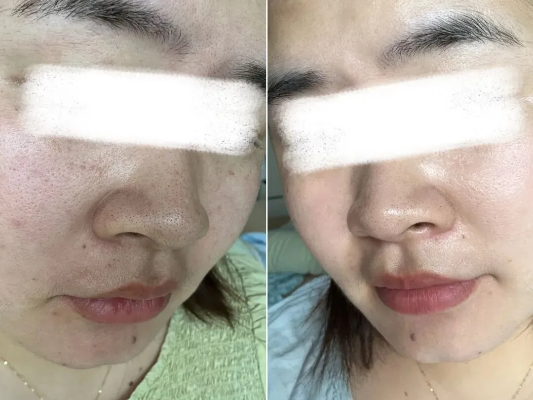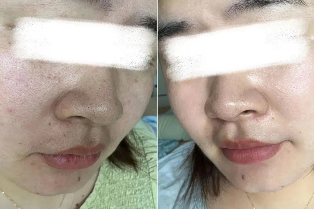 这次试用了 hfp 果酸水直接被惊喜到了,大家可以直接看对比图,毛孔小了好多~