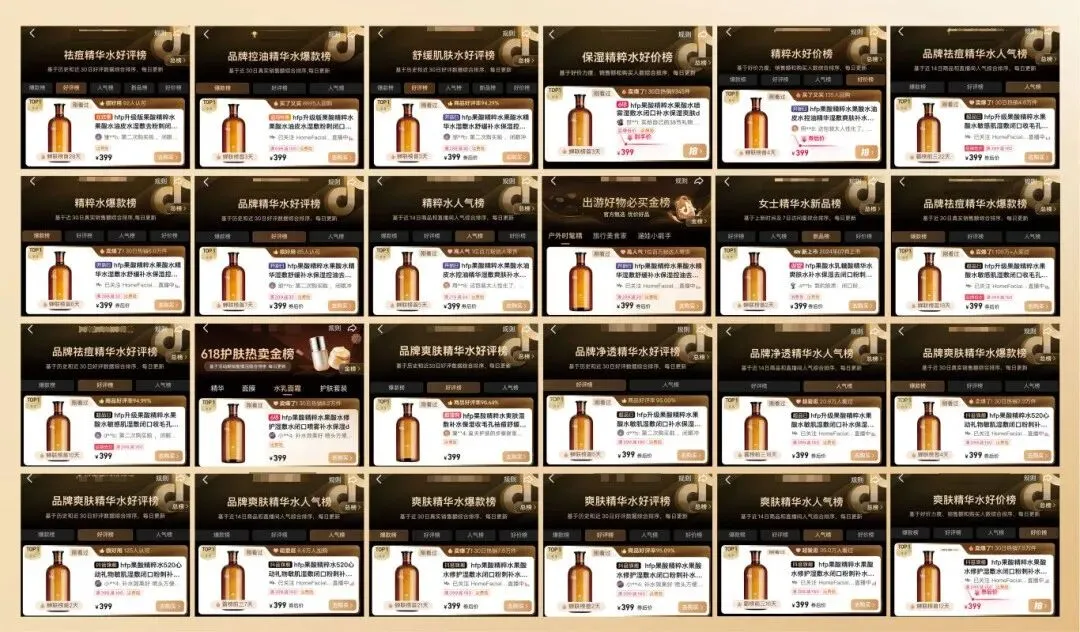 连续三年拿下了全国果酸护肤销量第一的成绩,某音人气榜、好评榜等 24 榜第一: