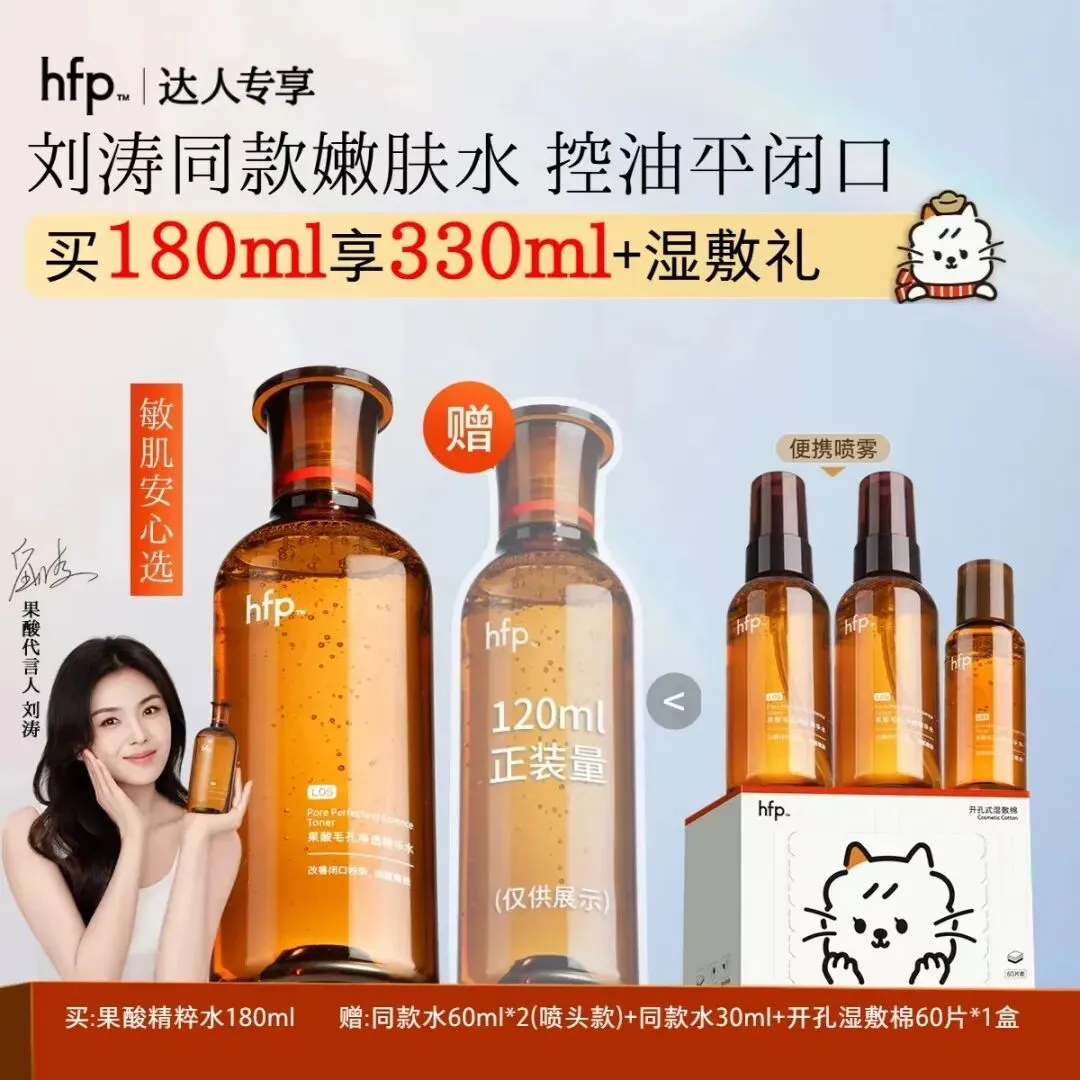 这也是刘涛的上镜秘诀在红毯、拍大片前,先用 hfp 果酸精粹水浸湿棉片、湿敷 5 分钟,疏通毛孔后皮肤干净通透,化妆想不服帖都难!