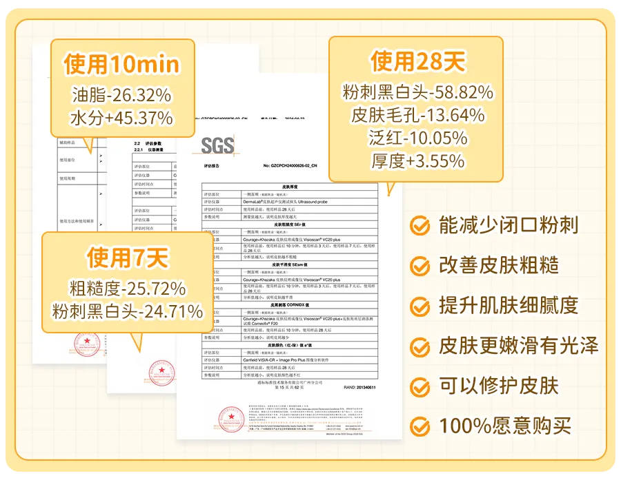 ✅连续使用 28 天,闭口粉刺痘 -59.09%、皮肤毛孔 -13.64%、粗糙度 -30.71%、光泽度 +19.83%!