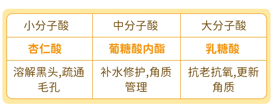 想要对付毛孔黑头,嫩肤提亮,更推荐大家从【果酸】入手,刺激性低,兼顾了温和与有效,适合绝大多数的妈妈们。