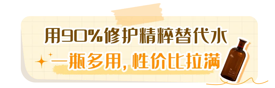 相当于用 90% 修护精粹替代水,妥妥精华的配置,爽肤水的价格!