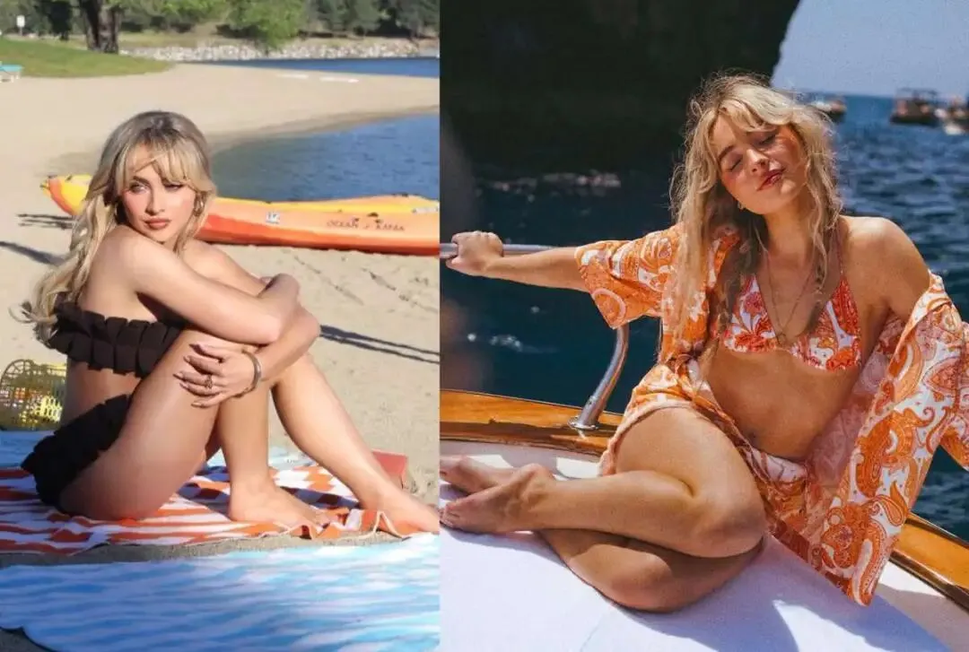 身穿泳装的她,随性又自在,仿佛下一秒就会拿起冲浪板,奔赴大海追逐浪花,而非慵懒躺卧沙滩。